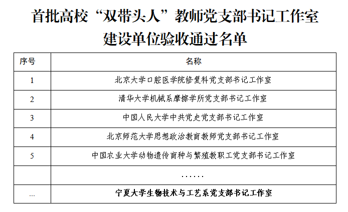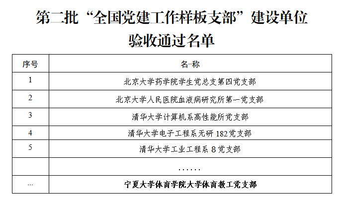 【澳门十大信誉网赌大全新闻中心讯 党委组织部】近日,教育部思想政治工作司公布了第二批新时代高校党建示范创建和质量创优工作和首批高校“双带头人”教师党支部书记工作室建设单位验收结果,信誉网赌“体育学院大学体育教工党支部”顺利通过了第二批“全国党建工作样板支部”建设单位验收,“生物技术与工艺系党支部书记工作室”通过了首批高校“双带头人”教师党支部书记工作室建设单位验收。