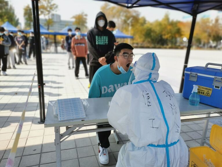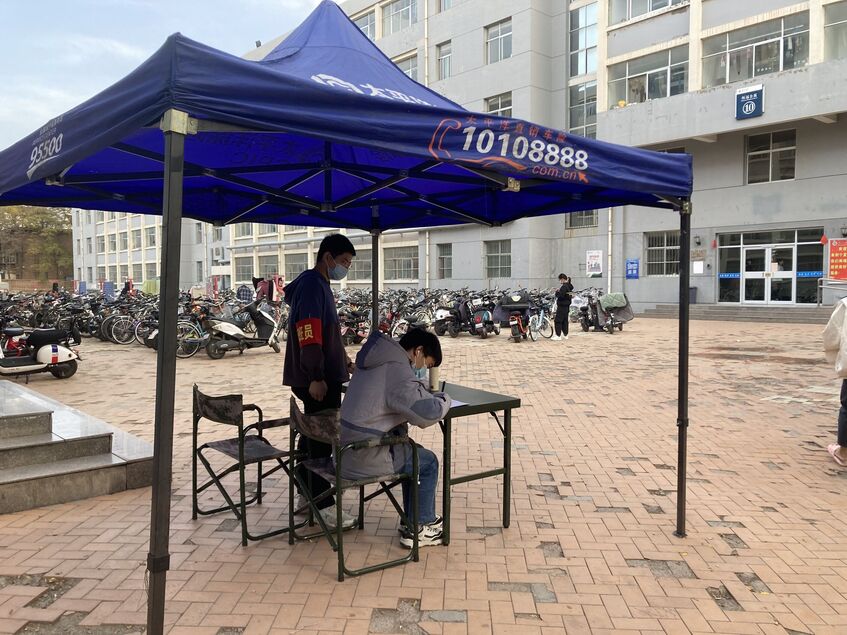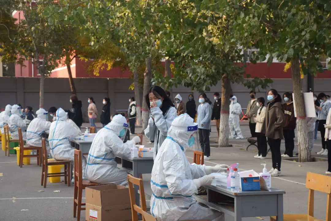 “张大嘴,说‘啊’,保持,对,好了……”在各校区核酸采样点,校医院医护人员和教师志愿者们为全校师生员工进行核酸检测扫码和标本采集工作。一批教师志愿者经过岗前培训,在核酸采集医护人员和校医院医生的指导下,陆续上岗投身校内核酸检测采样工作。他们当中有中层干部、教工党支部书记,也有普通老师,化身“大白”的那一刻,他们就是“战士”,是校园里最亮丽的风景。