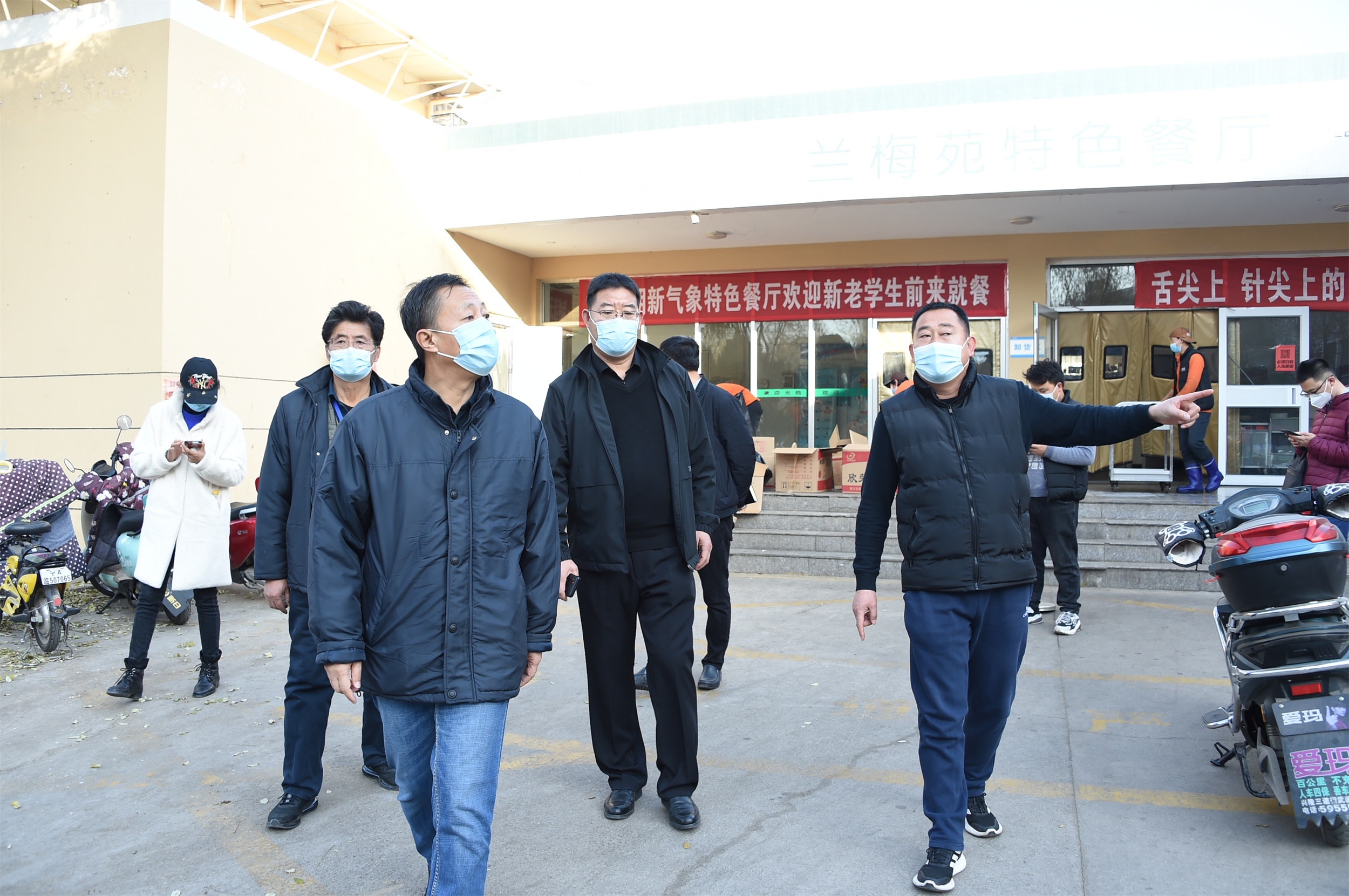 刘炎胜一行先后前往贺兰山校区、文萃校区实地检查了校园和学生宿舍、超市、餐厅等区域的环境卫生情况,宣传橱窗、宣传栏、条幅的更新、清洁整理情况,摩托车、电动车、自行车、共享单车集中停放和机动车规范停放的整治情况,校园快递服务中心的规范消杀、有序取件等运转情况。