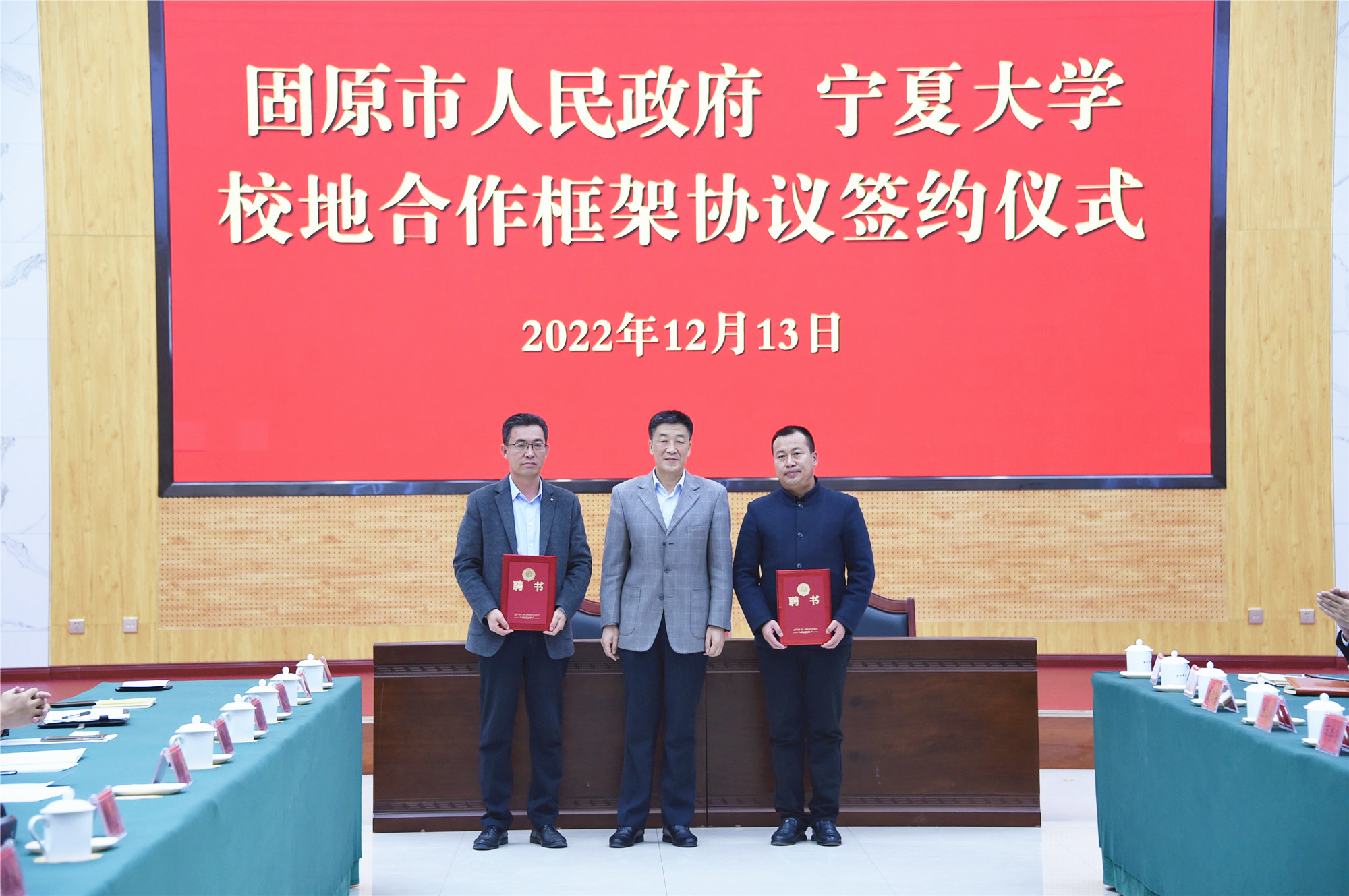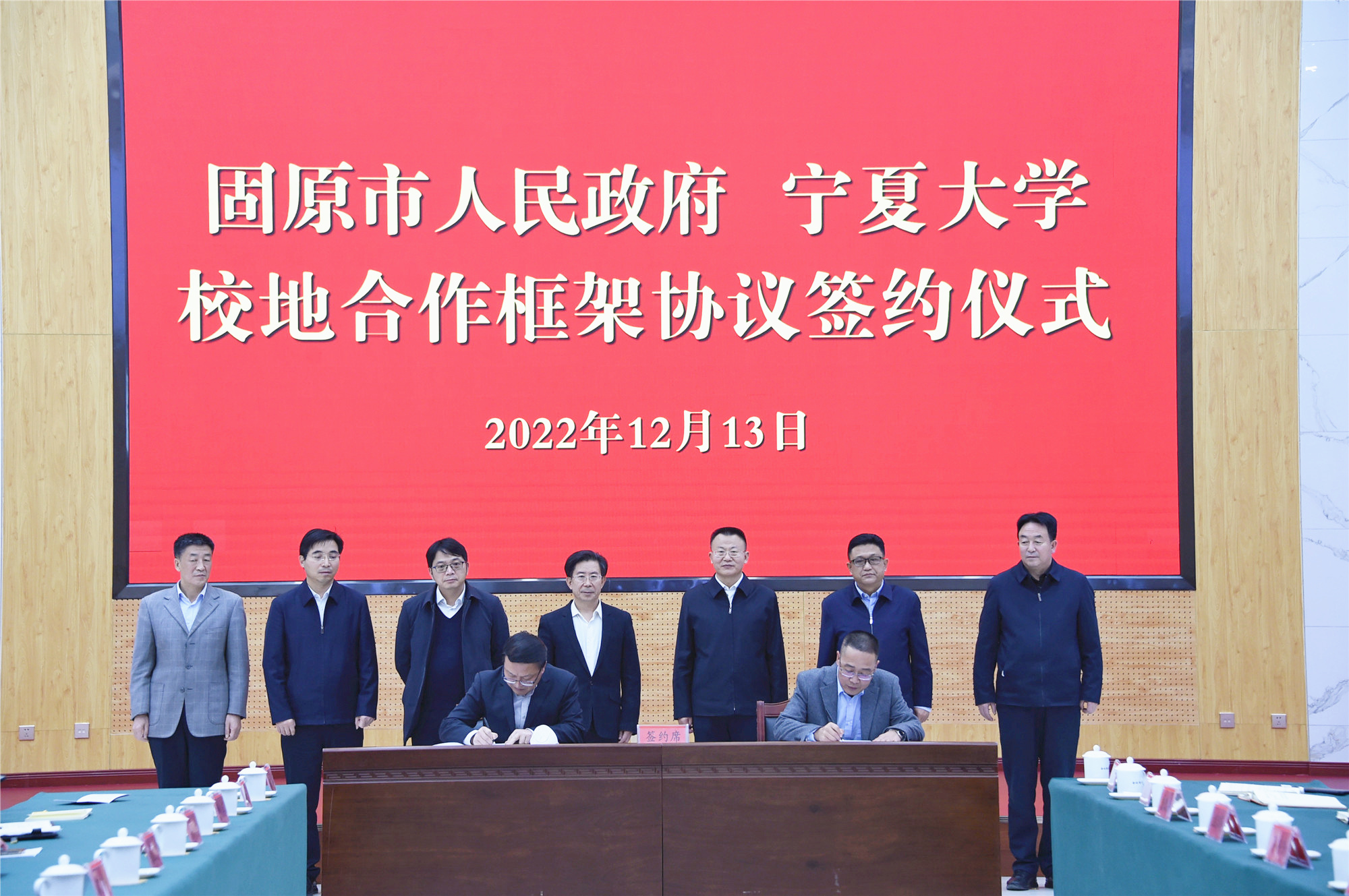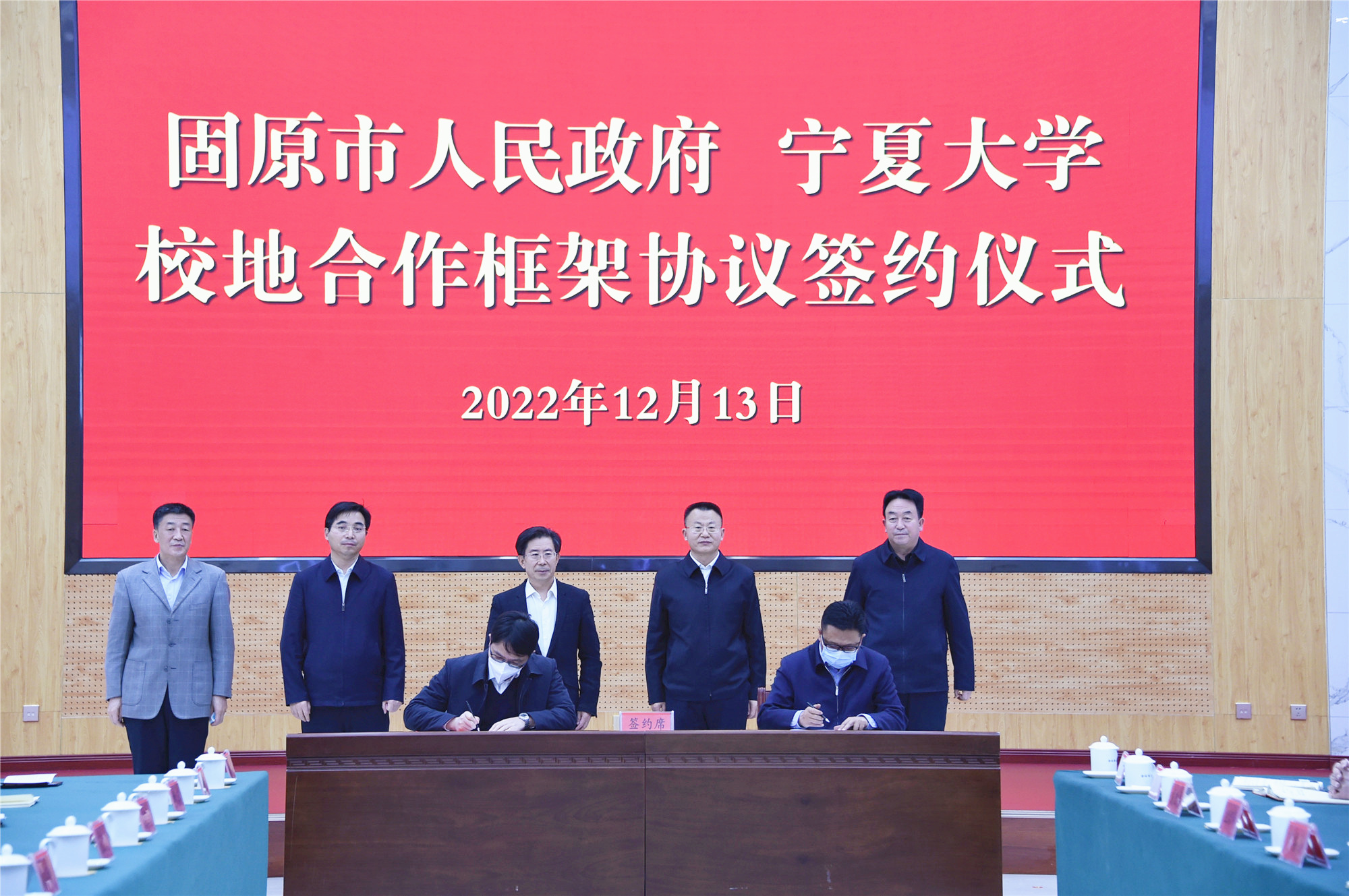 【澳门十大信誉网赌大全新闻中心讯 李明花/文 龚旭峰/图】为深入贯彻落实党的二十大精神和中央、自治区党委人才工作会议精神,推动校地合作高站位谋划、高维度对接、高质量发展,共同擘画服务社会主义现代化美丽新宁夏建设新篇章,12月13日,澳门十大信誉网赌大全与固原市人民政府签署校地合作框架协议。校党委书记李星,校党委副书记、校长彭志科,校党委常委、副校长李学斌,校党委常委、组织部部长张立杰,固原市委书记冼国义,市委副书记、政府市长杨青龙,市委常委、政府副市长任立新出席签约仪式。固原市委常委、组织部部长杨继宏主持仪式。