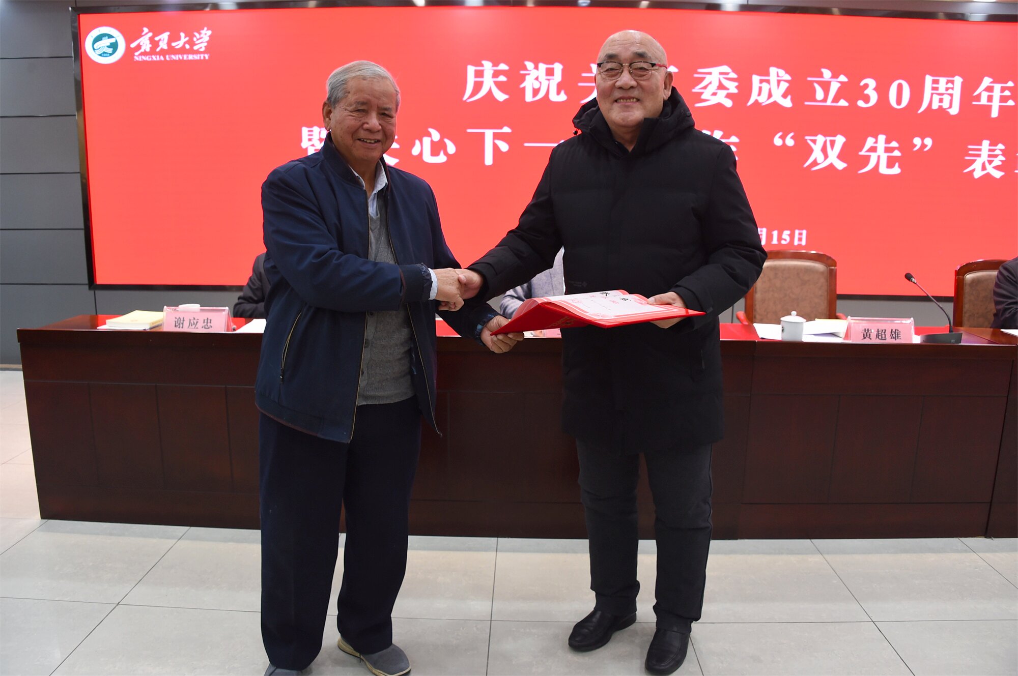 王玉炯宣读《关于颁发澳门十大信誉网赌大全关工委“突出贡献奖”和表彰“关心下一代工作先进集体和先进个人”的决定》,与会领导为荣获“突出贡献奖”的学校原关工委主任刘世俊、刘青儒、赵维素三位老同志的代表,以及获得先进工作集体和个人荣誉的代表颁奖。