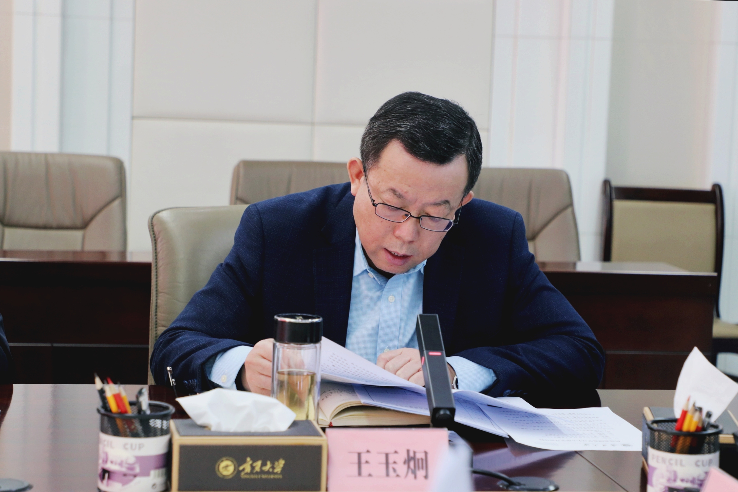 他强调,要将学习党的二十大成果转化为蓄势聚能推动学校高质量发展,全力以赴实现新征程的良好开局。聚焦“双一流”建设,聚焦“部区合建”发展,全面落实立德树人根本任务,紧紧围绕党的二十大确立的奋斗目标和作出的战略部署,将二十大精神转化为干事创业的强大动力,着力在提高人才培养质量、科学研究水平、社会服务水平上下功夫,引领广大教职工心往一处想、劲往一处使,在学校高质量发展进程中不断开辟新领域新赛道,奋力谱写学校“双一流”建设新篇章。