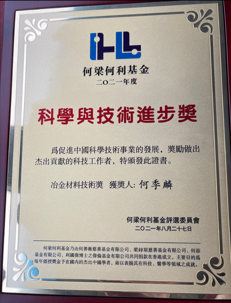 2019年,何季麟获首批“宁夏杰出人才奖”;2020年,他以第一创作者的身份获得国家科技发明二等奖,同年,他将获得的自治区首届科技功勋奖的50万元奖金全部捐献出来,用于企业科研工作。近两年来,他始终紧密结合宁夏新材料、新能源领域的科技创新进步,以及石嘴山市产业转型升级的科技发展战略、技术路线的产业需求,牵线搭桥,出谋划策,助推宁夏引进发达地区先进技术及相关产业领域高素质团队和人才。