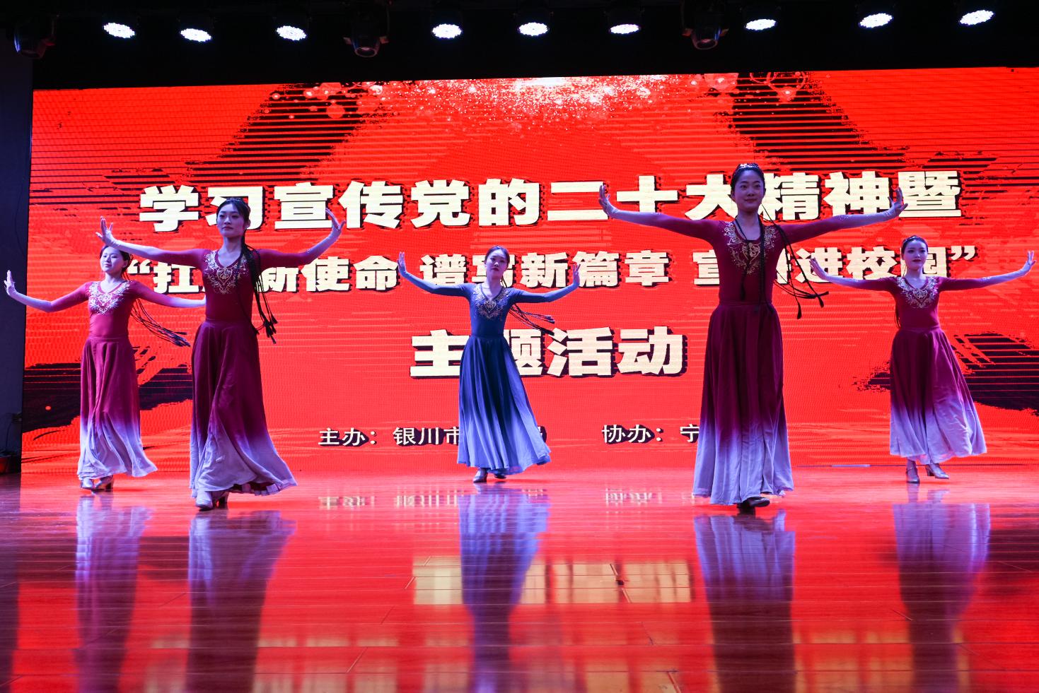 银川市委宣传部讲师团团长脱俊卿,公安厅机关党委委员、组织处副处长李青宁,银川市委政法委队伍建设指导室主任、四级调研员伍一中,澳门十大信誉网赌大全音乐学院副院长陈宏与数百名师生代表共同参加活动。