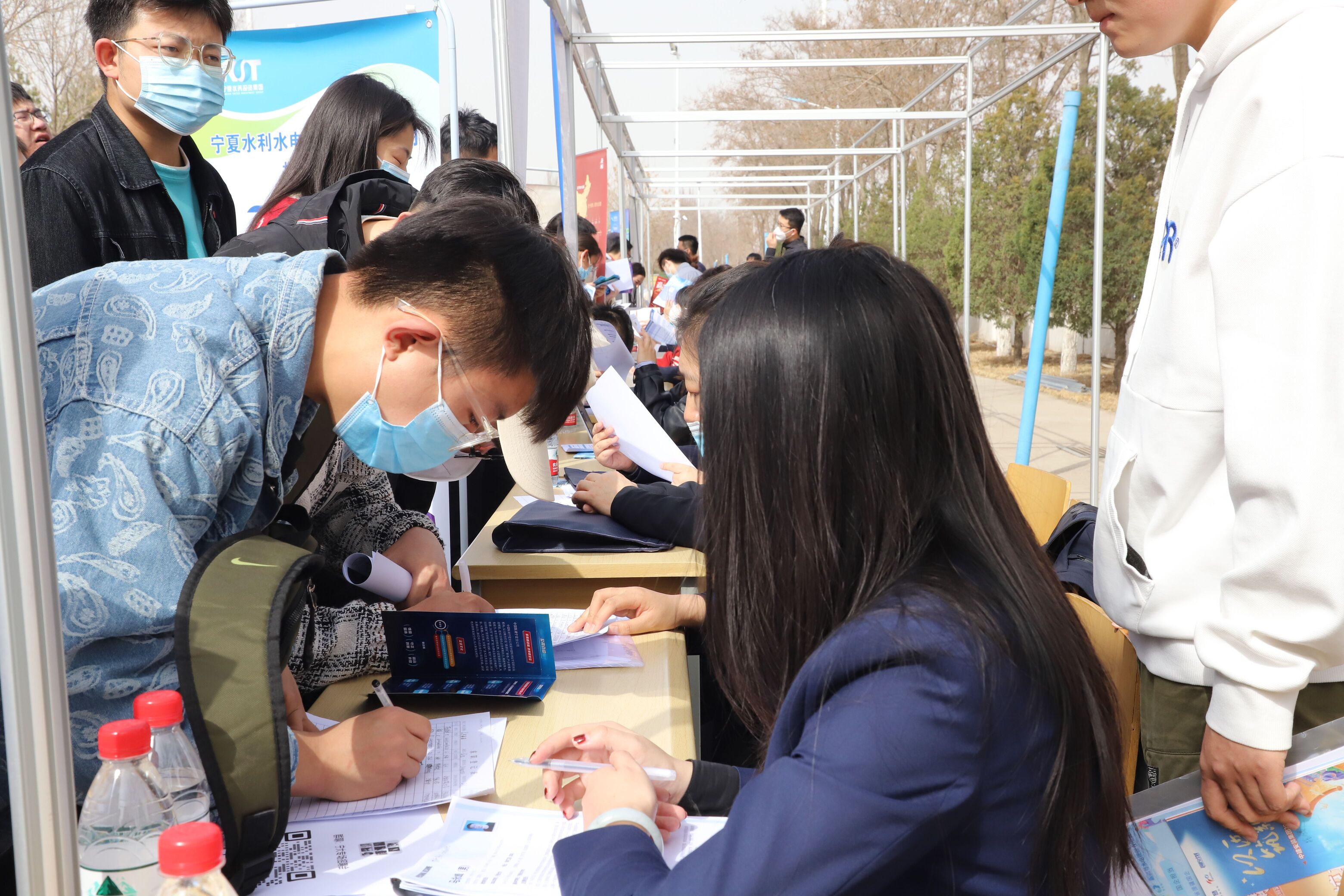 本次招聘会采用“校园招聘会+网络招聘会+视频面试”的形式。在校园内现场开展招聘活动,搭建标准企业招聘展位,使参会企业与求职者面对面洽谈,实现人力资源精准对接,并邀约专业指导师,现场为高校毕业生提供就业指导、见习、简历诊断、职业测评、免费技能培训等“一对一”服务。同时充分利用移动互联网平台优势,开展线上双选会,用人单位、学生通过小程序实现在线视频面试。