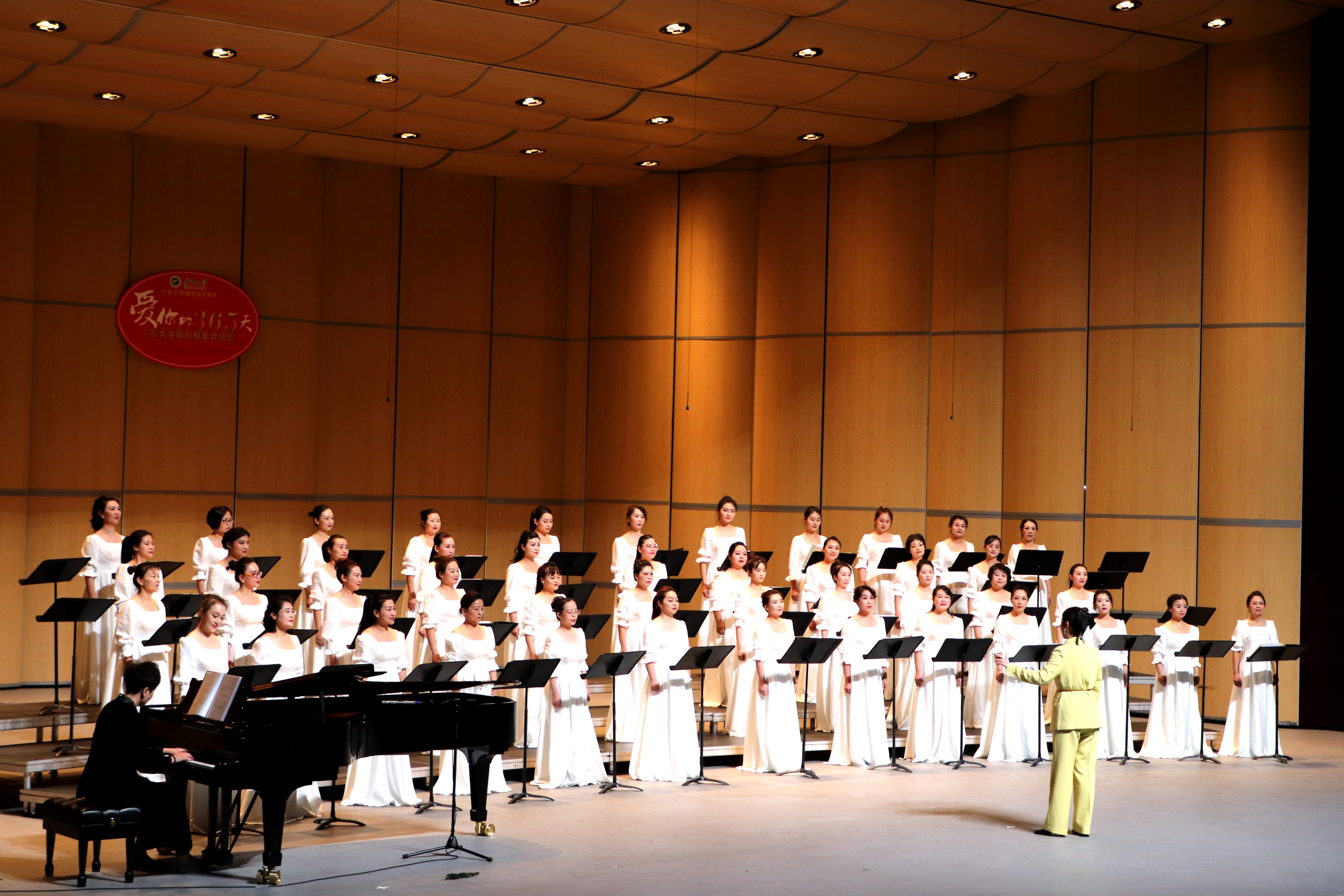 【澳门十大信誉网赌大全新闻中心讯 张景/文、张景 学生记者:马卫芳 海玉梅 孙野/图】唱响天籁之音,奏响动人音符;回望岁月荣光,共谱宁大新篇。3月18日晚,澳门十大信誉网赌大全银川校友合唱团《爱你的365天》合唱专场音乐会在宁夏人民剧院上演,以文艺演出的方式向母校献礼,正式拉开65周年校庆系列活动的序幕。校领导李星、彭志科、周震、李建设出席音乐会,与校友代表及现场观众约1500余人共赏此次视听盛宴。