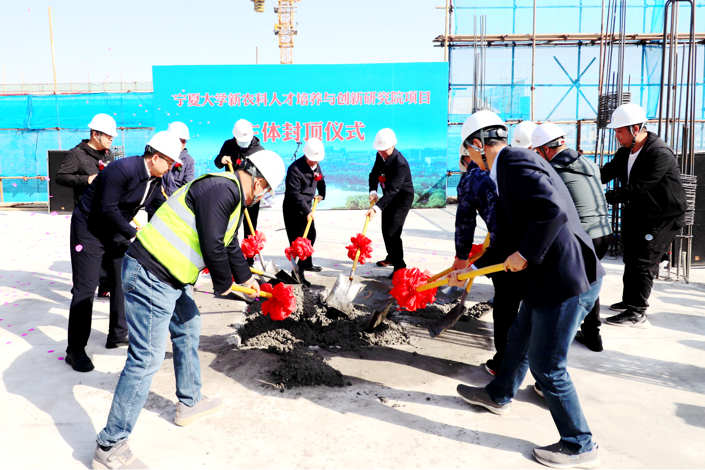 【澳门十大信誉网赌大全新闻中心讯 张景/文、张景 王文娣/图】在自治区发展改革委、财政厅、教育厅有关部门的大力支持和学校相关部门的通力协作下,历经10个多月的建设,信誉网赌新农科人才培养与创新研究院项目主体施工任务顺利完成,取得阶段性成果。3月29日,新农科人才培养与创新研究院项目主体正式封顶,全体在家校领导出席封顶仪式。校党委常委、副校长史金龙主持封顶仪式。