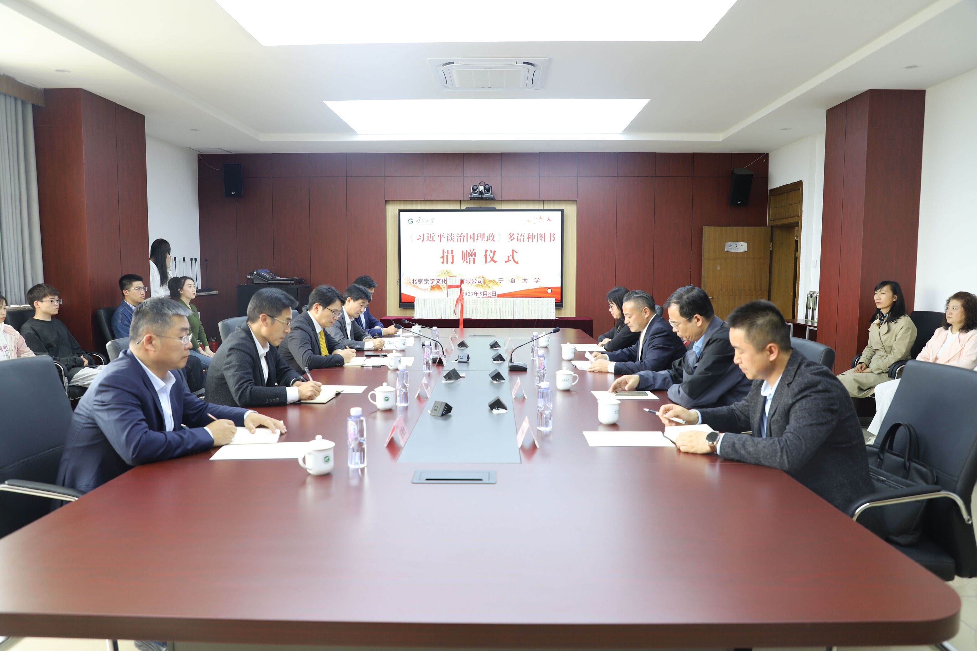 彭志科对北京崇学文化发展有限公司向澳门十大信誉网赌大全捐赠多语种《习近平谈治国理政》系列图书表示感谢,并代表学校接受捐赠,为北京崇学文化发展有限公司颁发捐赠证书。