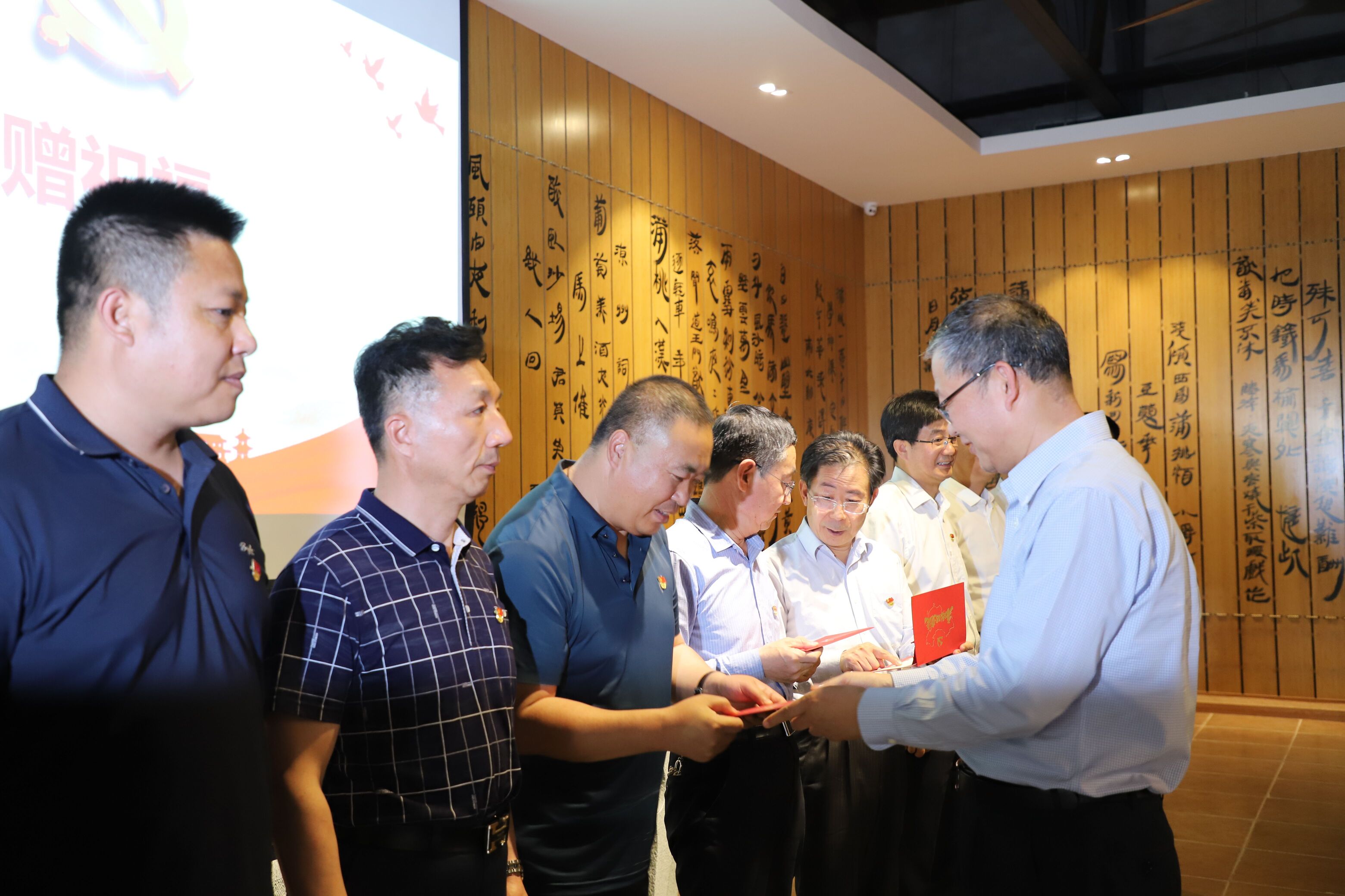 在“赠祝福”环节,校党委常委、纪委书记周运生为第九巡回指导组组长柴建国,第九巡回指导组成员冯学军、梁建平、程红军、李金明,校党委书记李星,校党委副书记周震,校党委常委、副校长刘炎胜,澳门十大信誉网赌大全新华学院党委书记杨文刚,校党委常委、组织部部长张立杰等十位同志送上政治生日贺卡和礼物读本。一张政治生日贺卡既有组织温暖的祝福,也饱含着组织对大家殷切的期望。