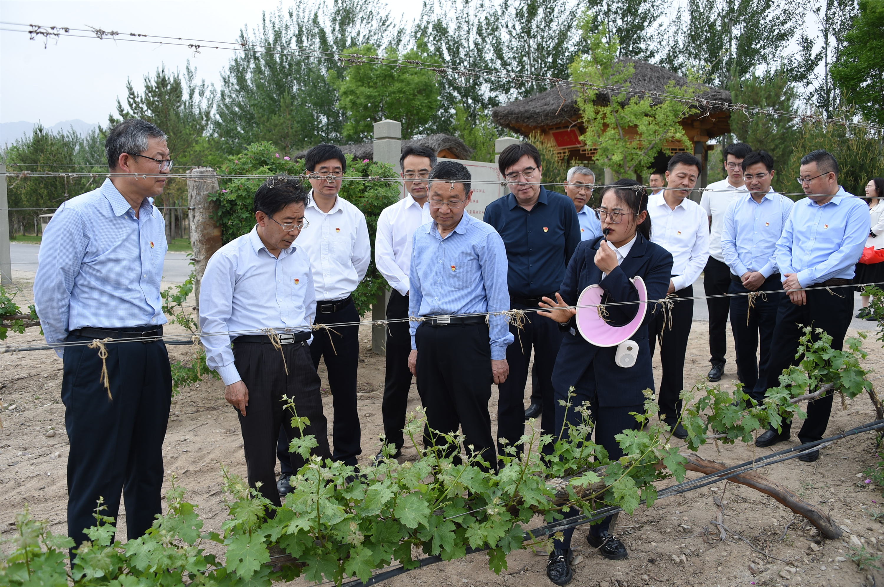 主题党课结束后,大家在讲解员的带领下开展了“沿着总书记足迹,感悟思想伟力”的学习实践活动。全体党员沿着习近平总书记视察志辉源石酒庄的足迹,来到废弃矿坑旁感受贺兰山生态修复的显著成效,在酿酒葡萄种植基地了解贺兰山东麓葡萄的种植环境与技术,并进入酒窖了解葡萄酒的储藏及相关知识,对宁夏葡萄酒“当惊世界殊”的发展历程和光明前景有了更加深入的体会。