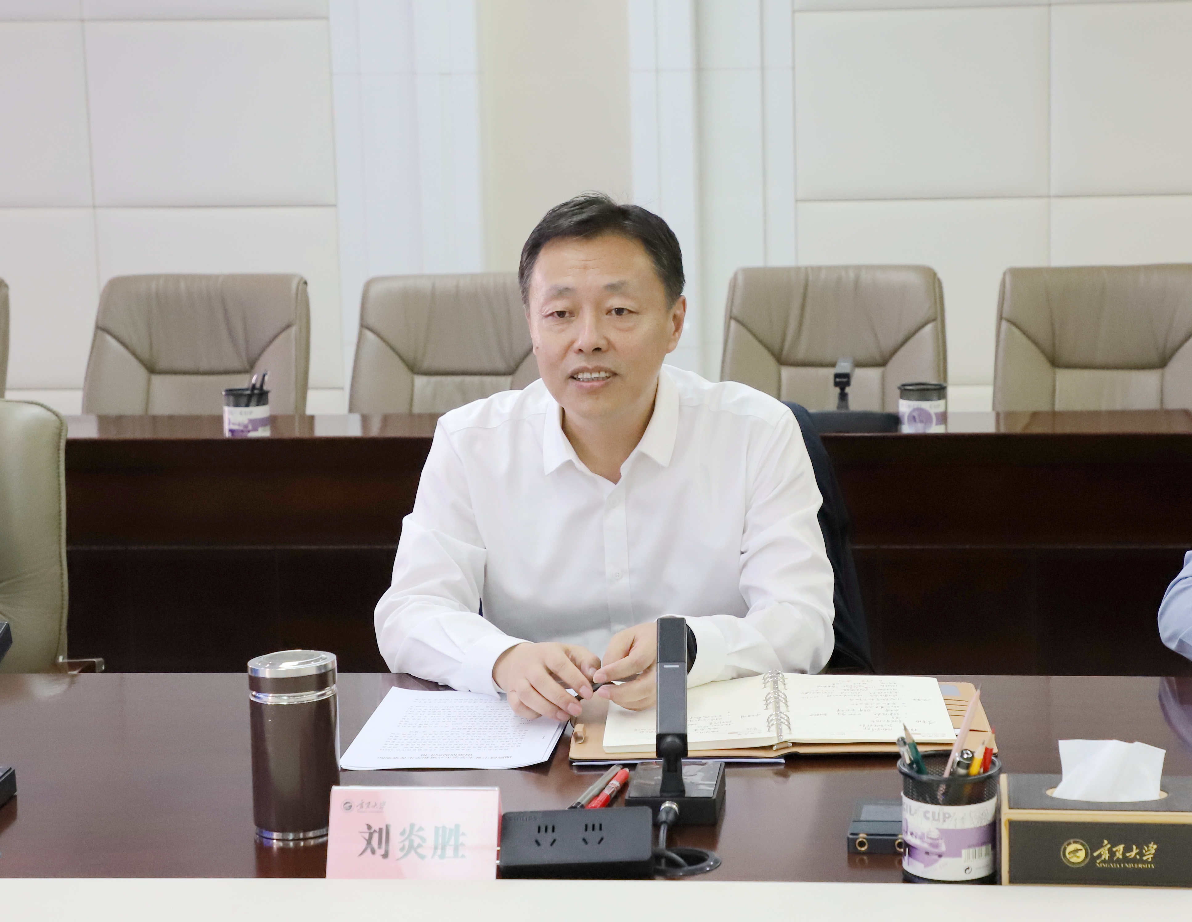 座谈会上,刘炎胜代表学校对景兆东一行来访表示欢迎,对自治区发展和改革委员会长期以来对学校发展的关心和支持表示感谢,并详细介绍了学校公寓和学生食堂的现状,对公寓和食堂建设的迫切性和必要性做了说明。他指出,学校经历多轮合校,各校区相对独立,总体规划布局相对分散,随着学生规模逐年扩大,供给不足日益凸显。学生公寓及食堂项目的建设,有利于缓解供给不足的问题,有助于加快推进“双一流”建设、全面提升学校综合实力、社会声誉和服务地方发展的能力。