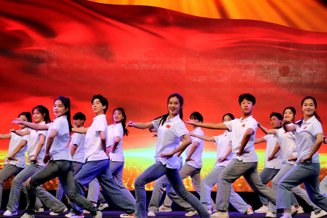 “唱支山歌给党听,我把党来比母亲......”演出在群舞《唱支山歌给党听》中拉开帷幕。整场演出分为《不到长城非好汉》《走好新的长征路》《撸起袖子加油干》三个篇章,有女生合唱、弦乐与钢琴三重奏、诗朗诵、男女二重唱、男生小合唱、唢呐、钢琴与打击乐等多种形式,节目类型十分丰富,共精心演绎了《映山红》《一条大河》《幸福中国一起走》等11个具有家国情怀的优秀作品。
