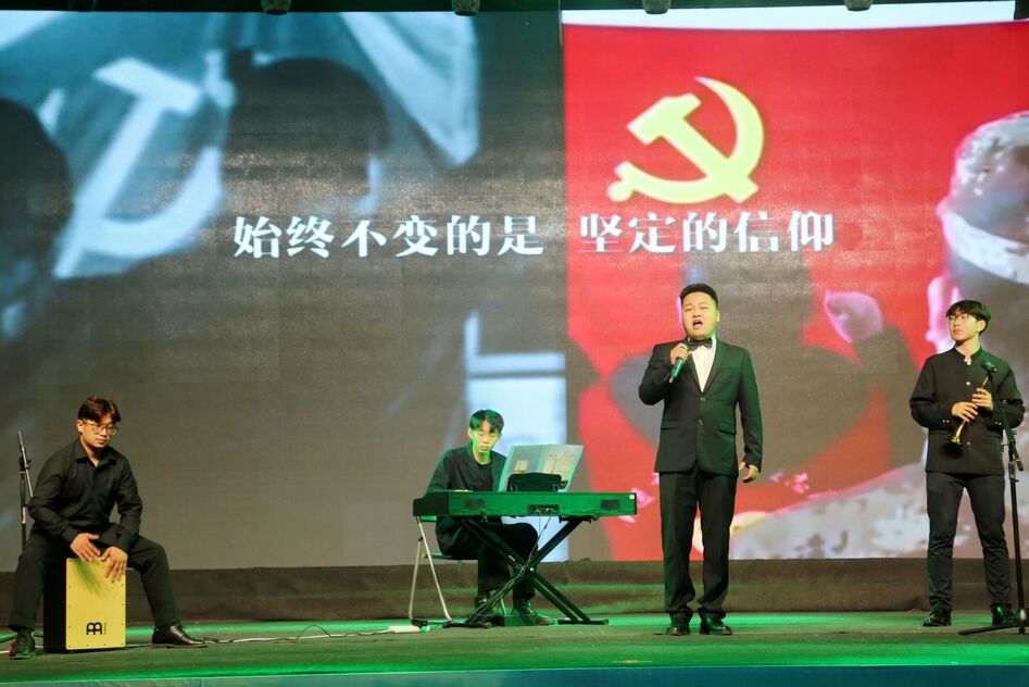 演出在歌伴舞《共筑中国梦》中圆满落幕。据悉,本次音乐党课排练历时一个月,来自澳门十大信誉网赌大全音乐学院的双带头人、党员教师、博士等共计160名师生参与创作和演出任务,新闻传播学院共有12名学生参与主持、朗诵等节目演出及拍摄、后期制作等保障任务。