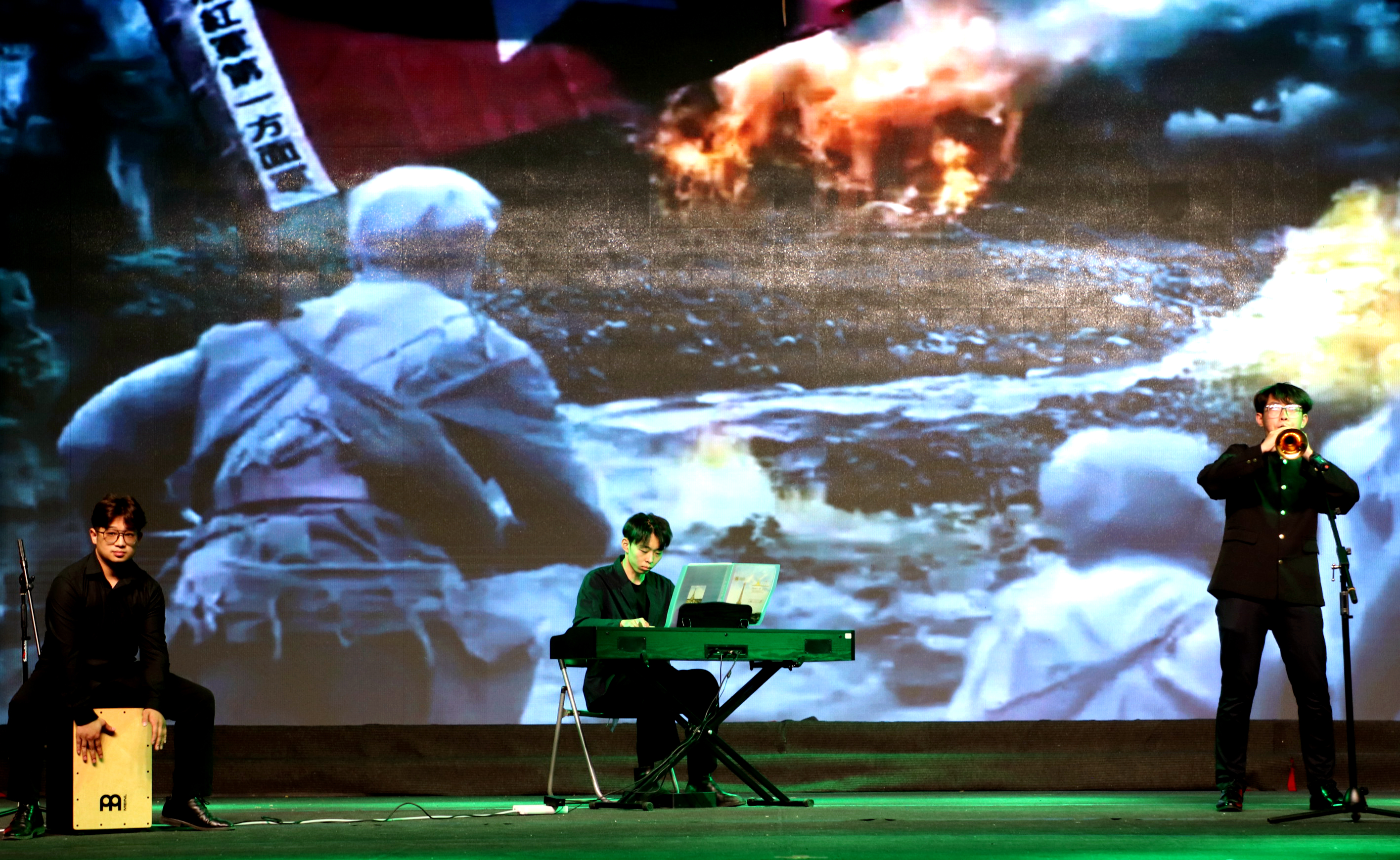 男子群舞《如果你不是英雄》,选用一堂思政课的方式生动讲述宁夏“任山河战役”;《战马奔腾》用二胡的旋律将气宇轩昂的赛手和奔腾嘶鸣的骏马表现得惟妙惟肖;小合唱《撸起袖子加油干》朗朗上口,呼吁我辈中国青年正值青春,必当尚德勤学、求是创新,为新时代不懈奋斗;女子群舞《碇步桥》古朴韵味,表达了记忆深处浅浅的欢愉和挥之不去的乡愁。
