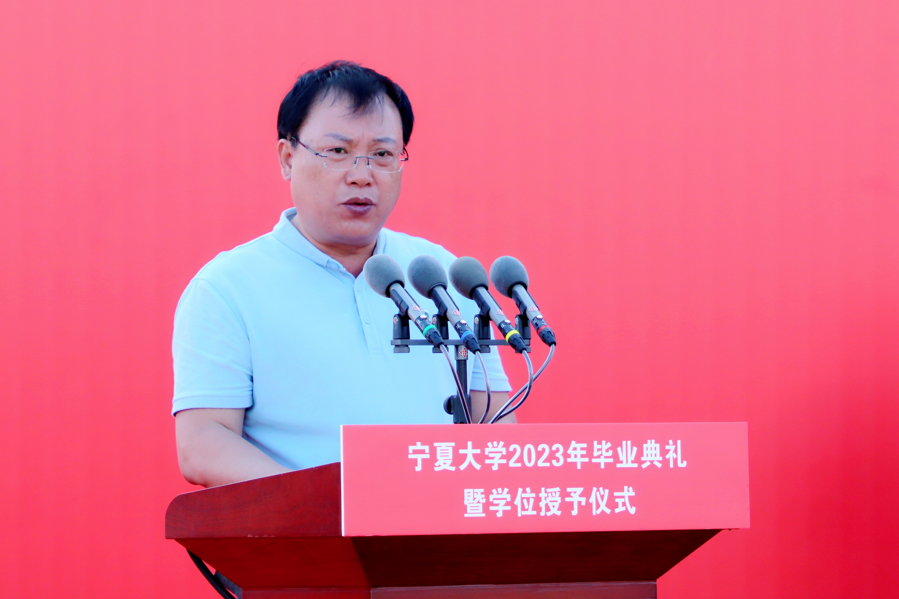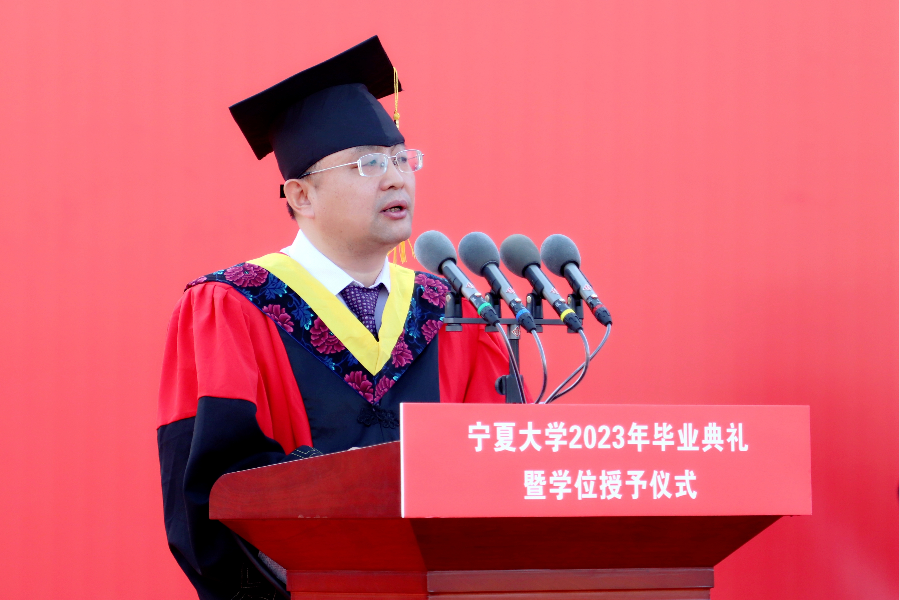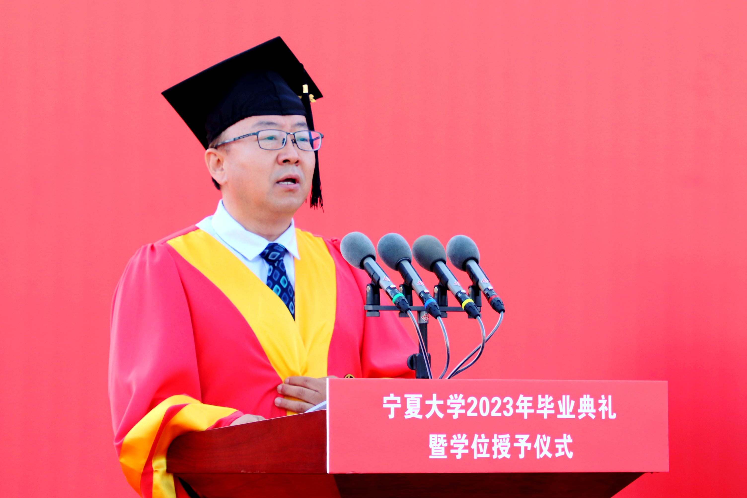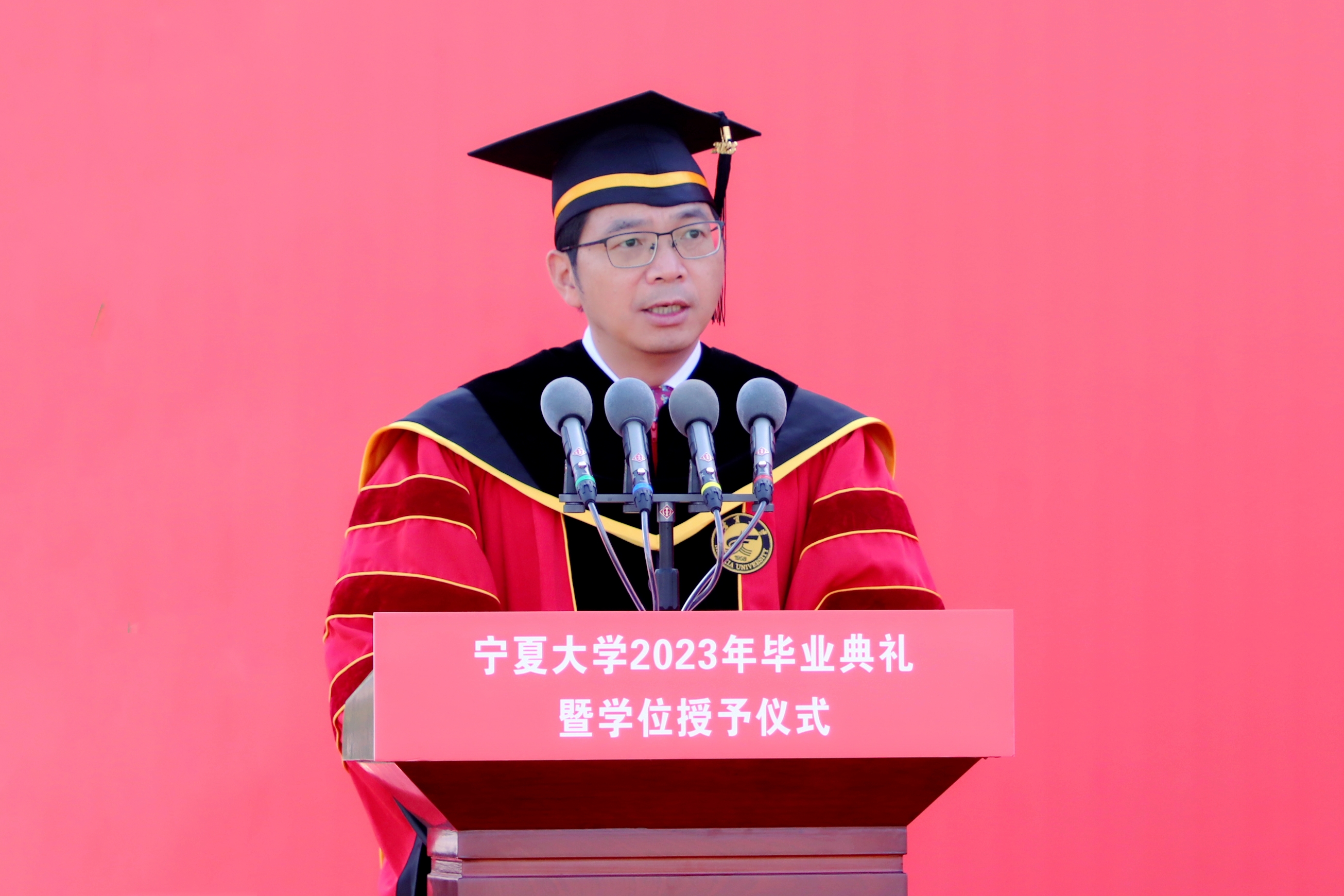 【澳门十大信誉网赌大全新闻中心讯 李明花/文 张景 李明花 王文娣 姬晓姗 中卫校区/图】6月20日上午8时,信誉网赌2023年毕业典礼暨学位授予仪式在文萃校区田径场和中卫校区应理报告厅同时举行,28名博士研究生,2167名硕士研究生,4658名本科生圆满完成学业,即将踏上新的人生旅途。校领导李星、彭志科、周震、李建设、黄河、刘炎胜出席毕业典礼,校党委常委、副校长黄河主持毕业典礼。
