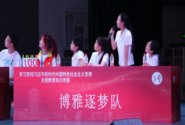决赛围绕习近平新时代中国特色社会主义思想、党的二十大精神、习近平总书记关于青年工作的重要论述、时政热点知识、马克思主义基本原理及“四史”相关知识等内容展开,共设置初试锋芒、棋逢对手、一举夺魁及附加题四个环节。参赛选手们聚精会神、准备充分、分秒必争、每分必夺,形成了互不相让、“火力全开”的激烈场面,决赛现场抢答气氛紧张热烈、场面精彩纷呈,赢得场内观众阵阵欢呼。