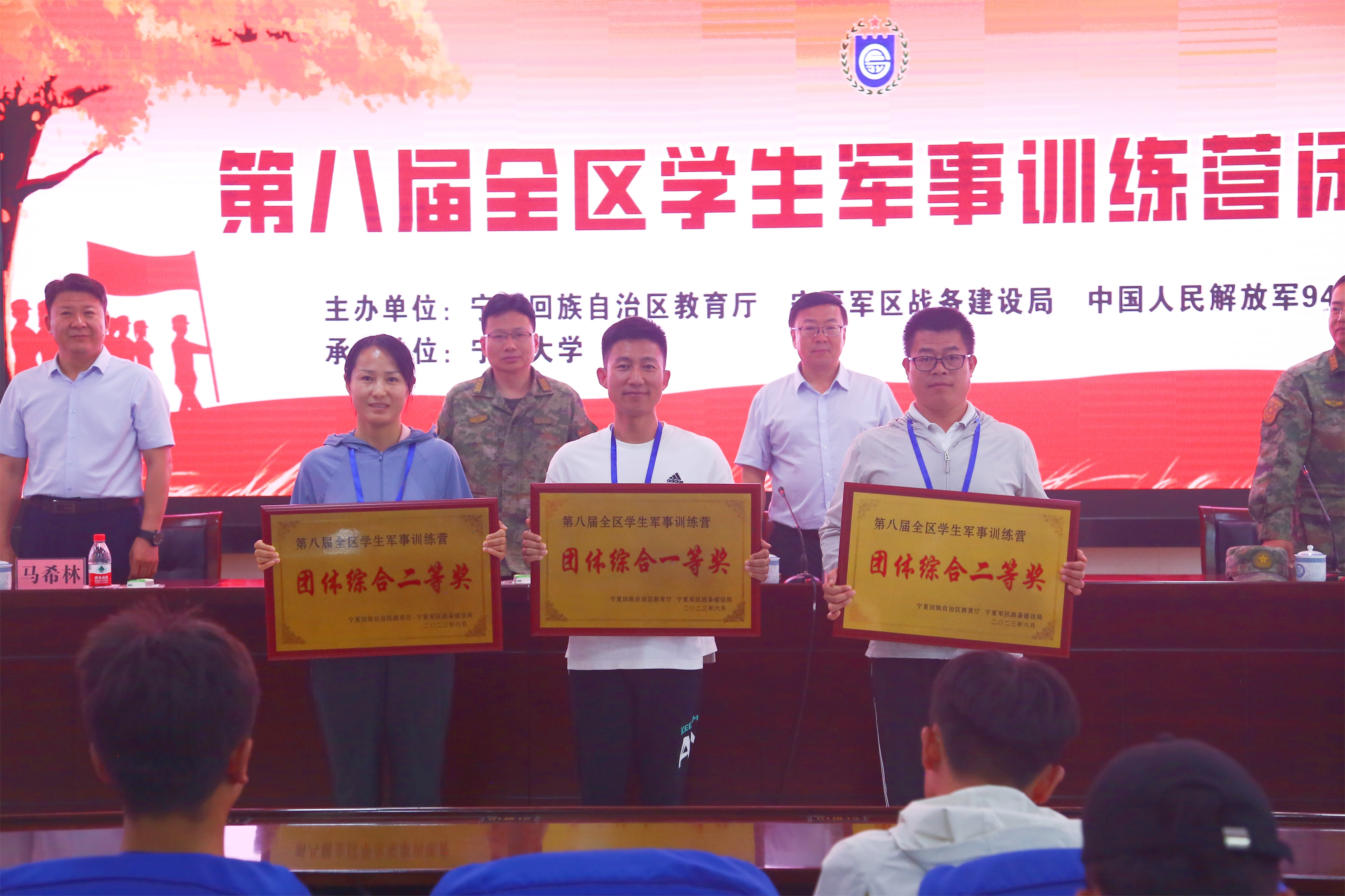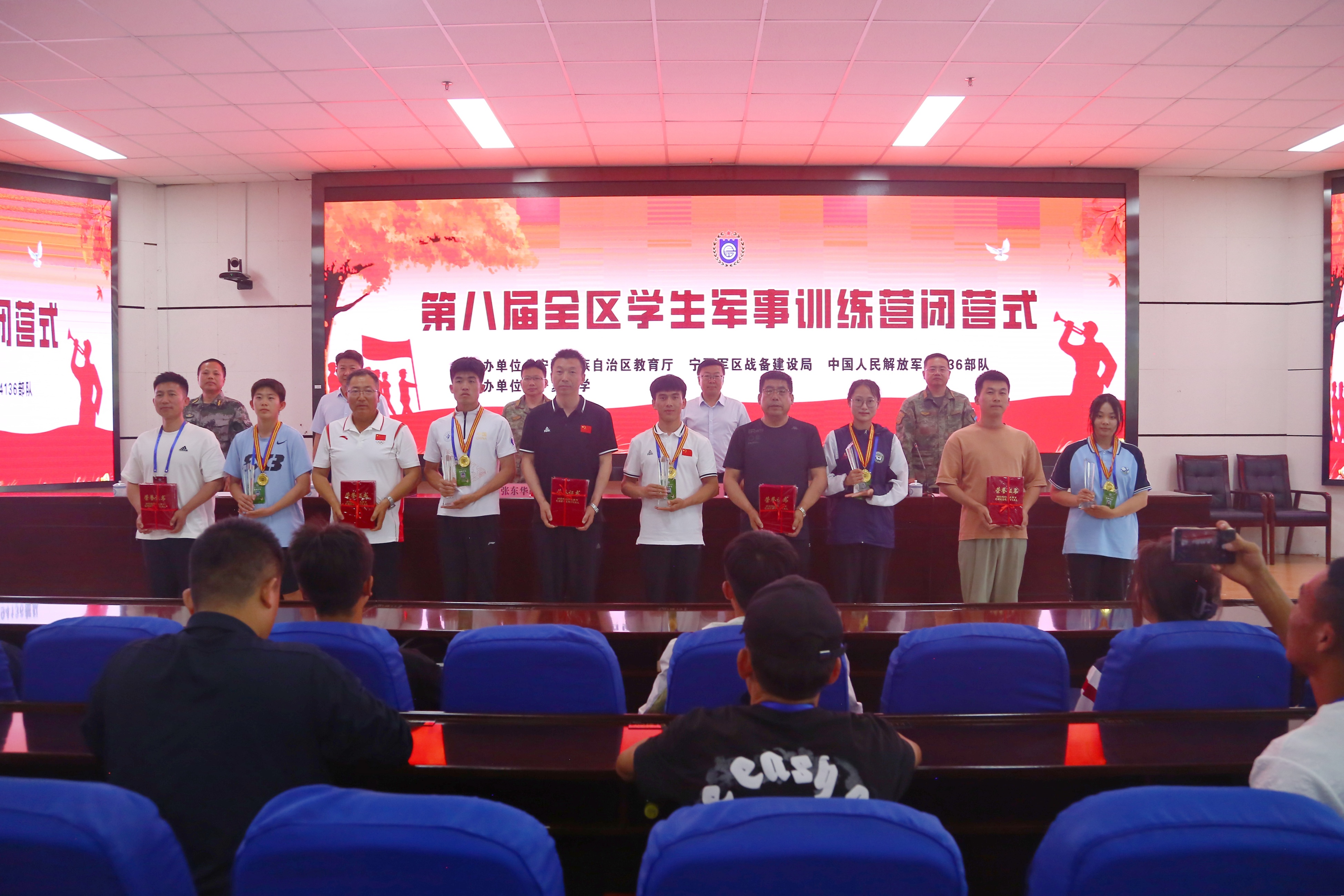 会上,黄河宣布自治区第八届学生军事训练营闭营。张东华宣布比赛获奖名单,与会领导为获奖单位及个人颁发了奖牌和证书。