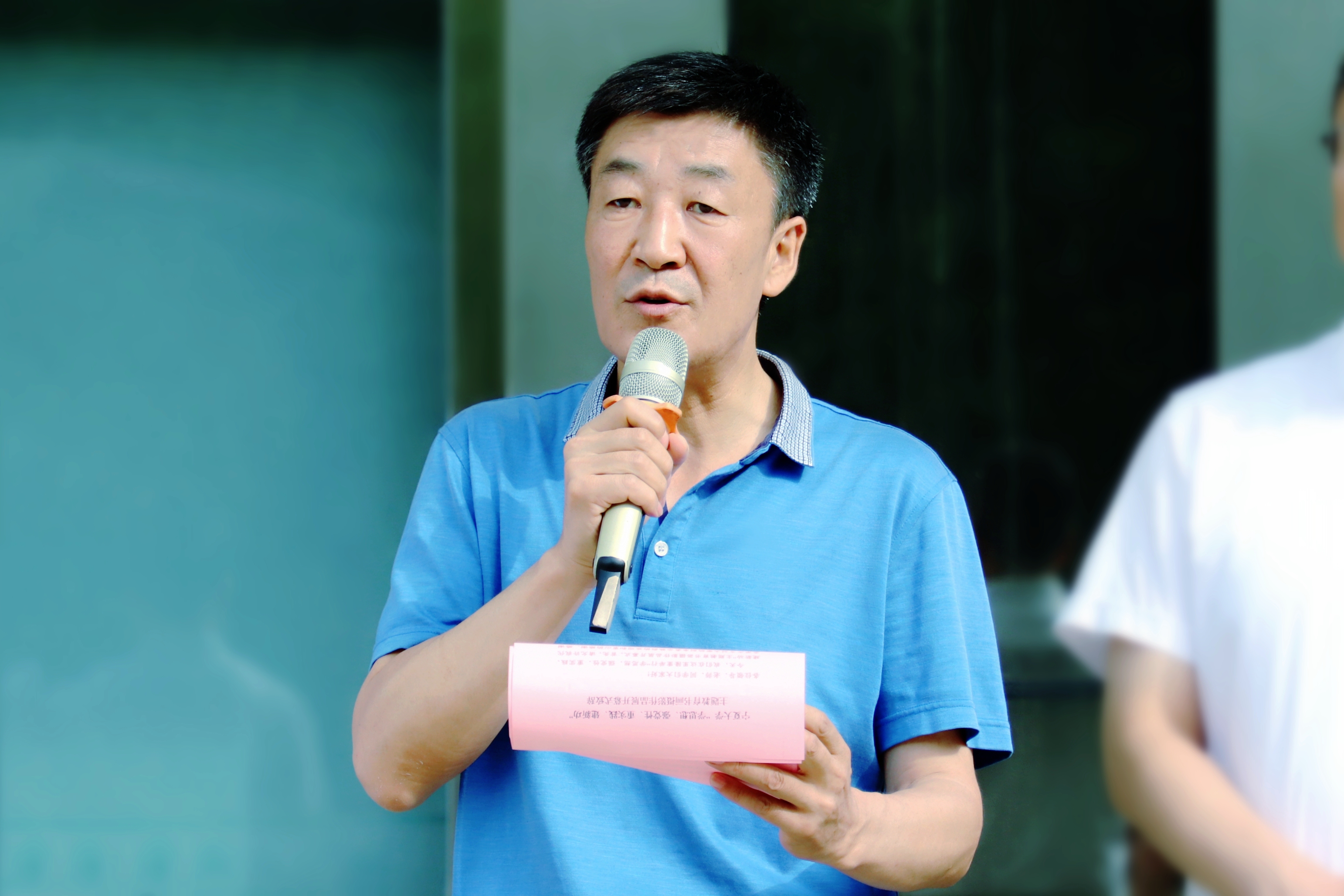 周震宣布书画摄影展开幕。