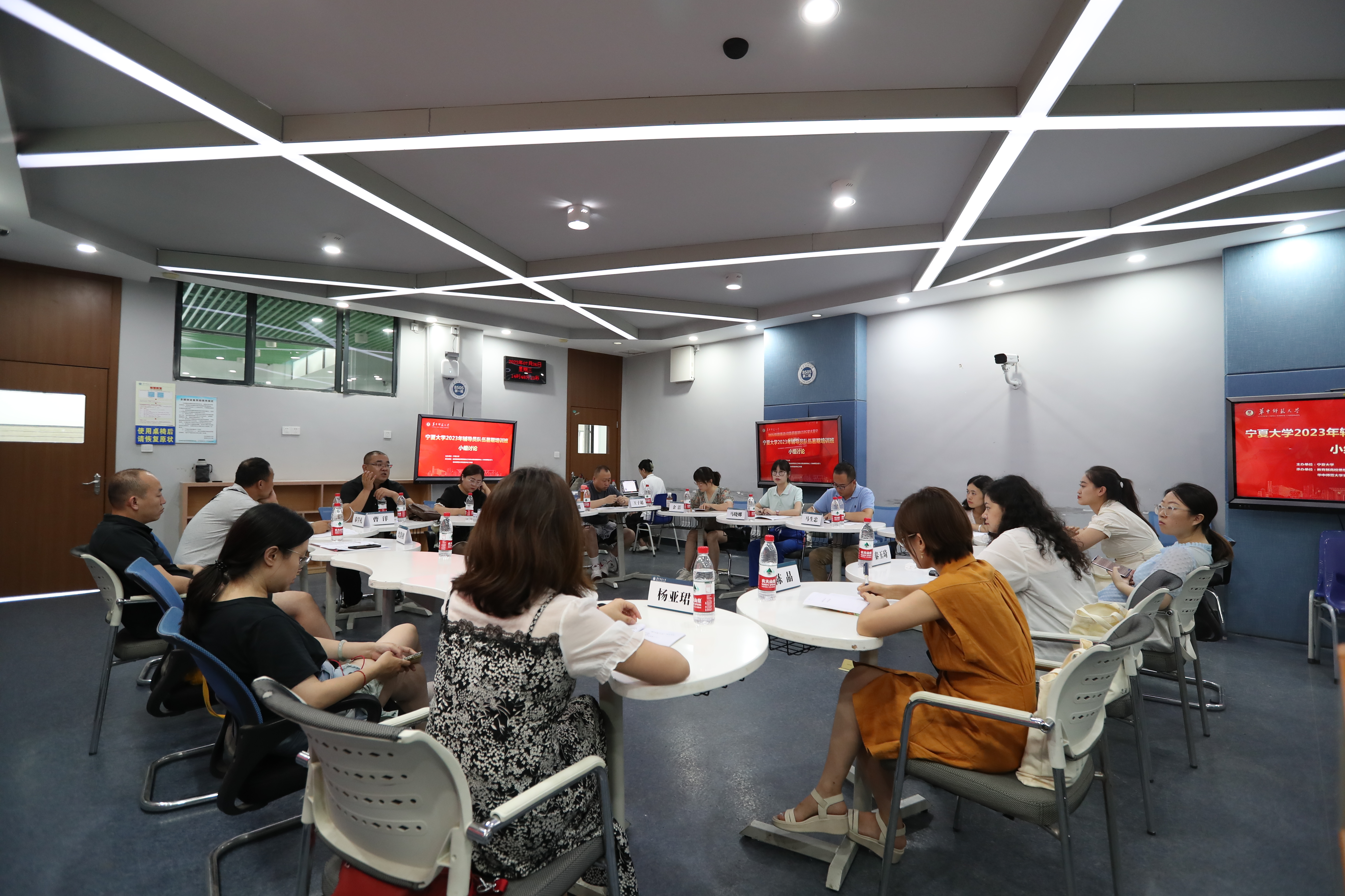 此次培训班采取专题教学和现场教学相结合的形式,共邀请专家8人,组织专题报告6场,现场教学3场。华中师范大学党委学工部思政处处长兼人武部部长李刁,“全国教育系统先进工作者”、“全国高校优秀辅导员”、第十届“全国高校辅导员年度人物”、华中农业大学理学院党委副书记祝鑫,华中师范大学外国语学院辅导员王莉,武汉大学党委学生工作部部长李勤,华中师范大学马克思主义学院院长万美容,中国地质大学(武汉)学生心理健康中心教授郭兰分别围绕新时代高校学生危机事件管理与应对、创新高校思政工作的实践探索、高校辅导员科研工作和学生工作互促、新时代高校辅导员的使命与担当、新时代高校思想政治工作前沿问题探究、心理危机的识别与干预等主题为学员作了精彩报告。学员们还前往祝鑫工作室及“一站式”学生社区、华中师范大学“一站式”社区、国家保密教育培训基地武汉基地、华中师范大学校史馆等地开展现场教学。