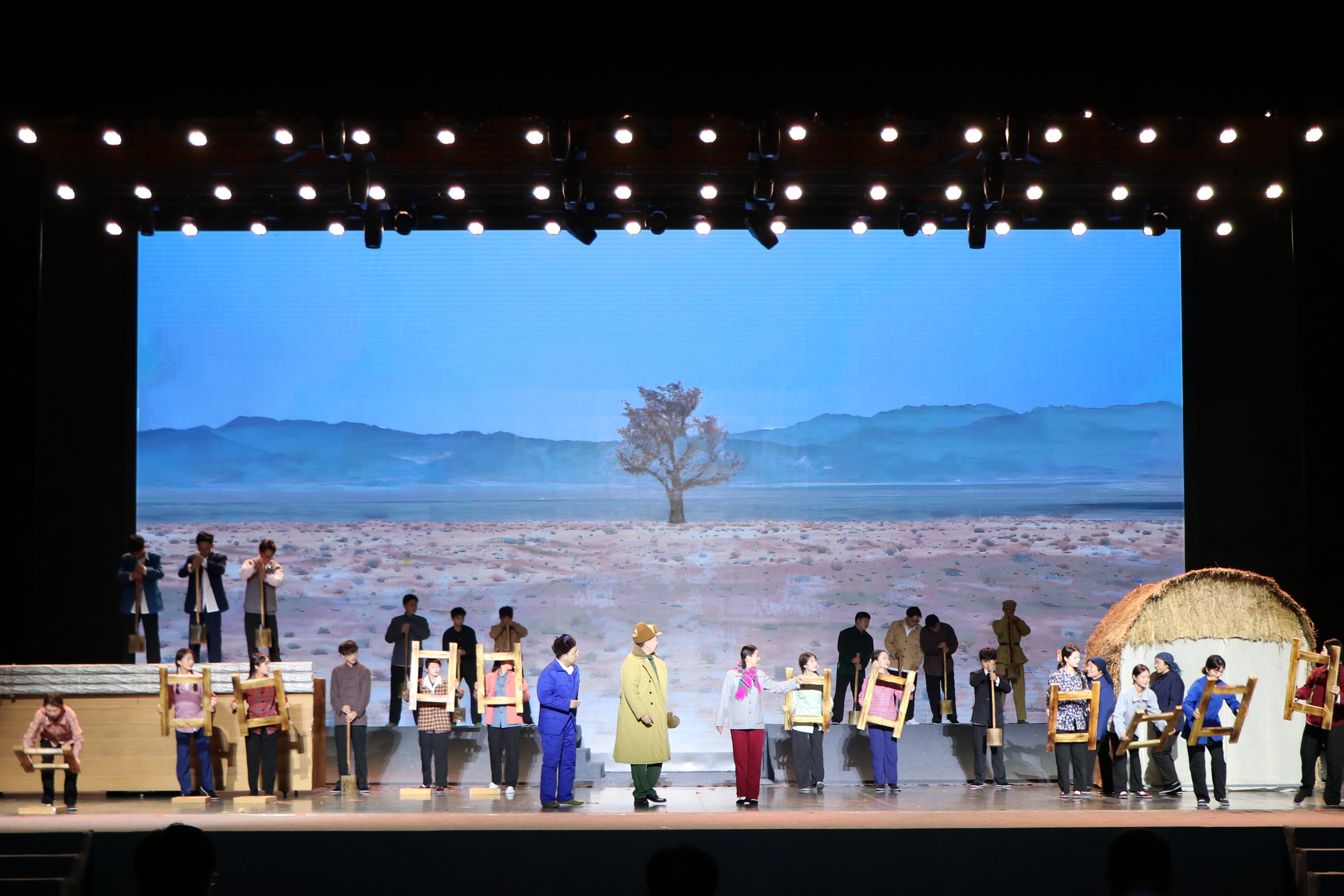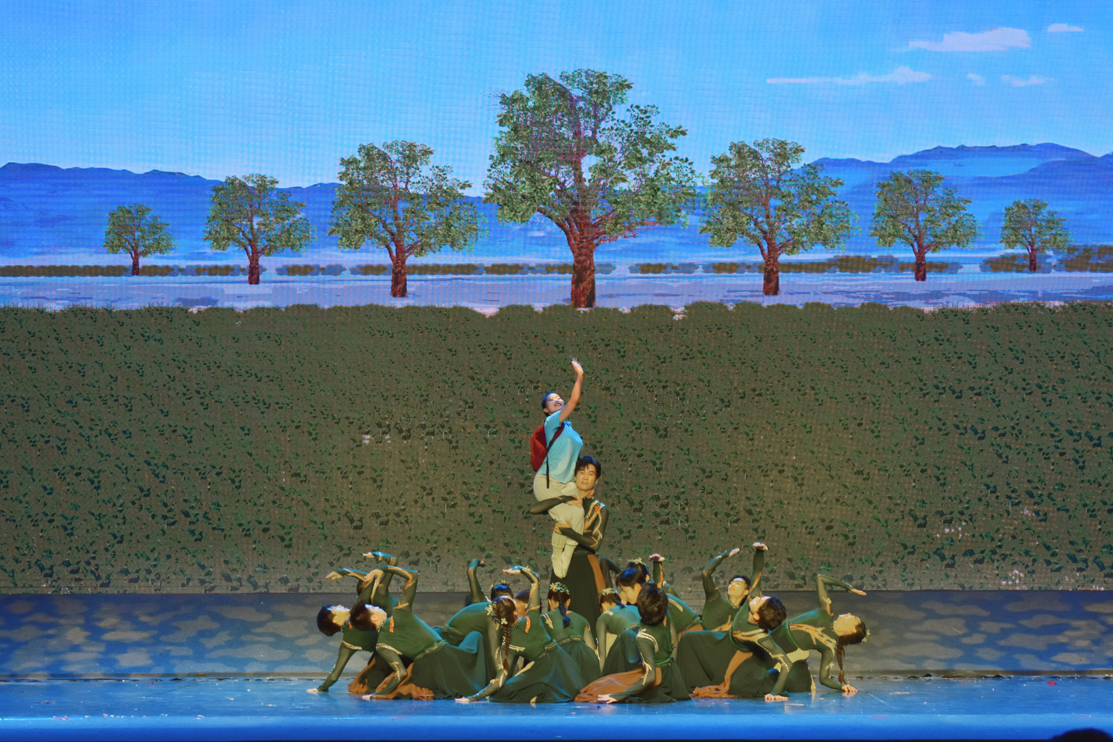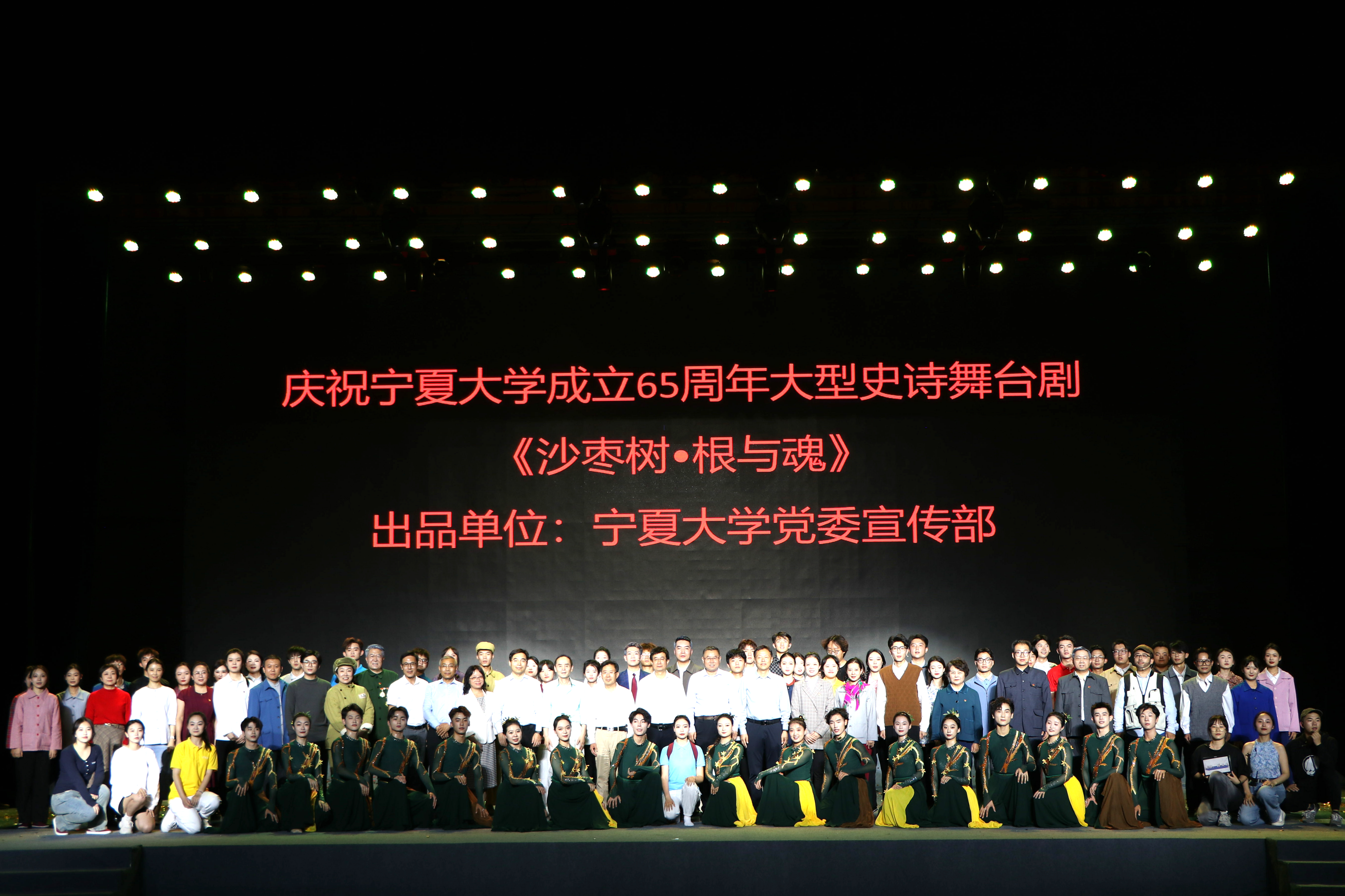 【澳门十大信誉网赌大全新闻中心讯 张景/文、张景 王文娣 杨雯 学生记者:吴峥/图】六十五载矢志不渝,不负建校初心;六十五载栉风沐雨,写就隽永篇章。在学校党委、行政的正确领导和大力支持下,在各部门单位的通力合作和有效组织下,经过编创排演团队和参演师生历时半年的精心排练和反复打磨,9月14日,庆祝澳门十大信誉网赌大全成立65周年原创史诗舞台剧《沙枣树•根与魂》在文萃校区大学生活动中心成功首演。校领导李星、周震、李建设、刘炎胜、李学斌、赵晓佳与师生代表3000余人在现场共同观看演出。