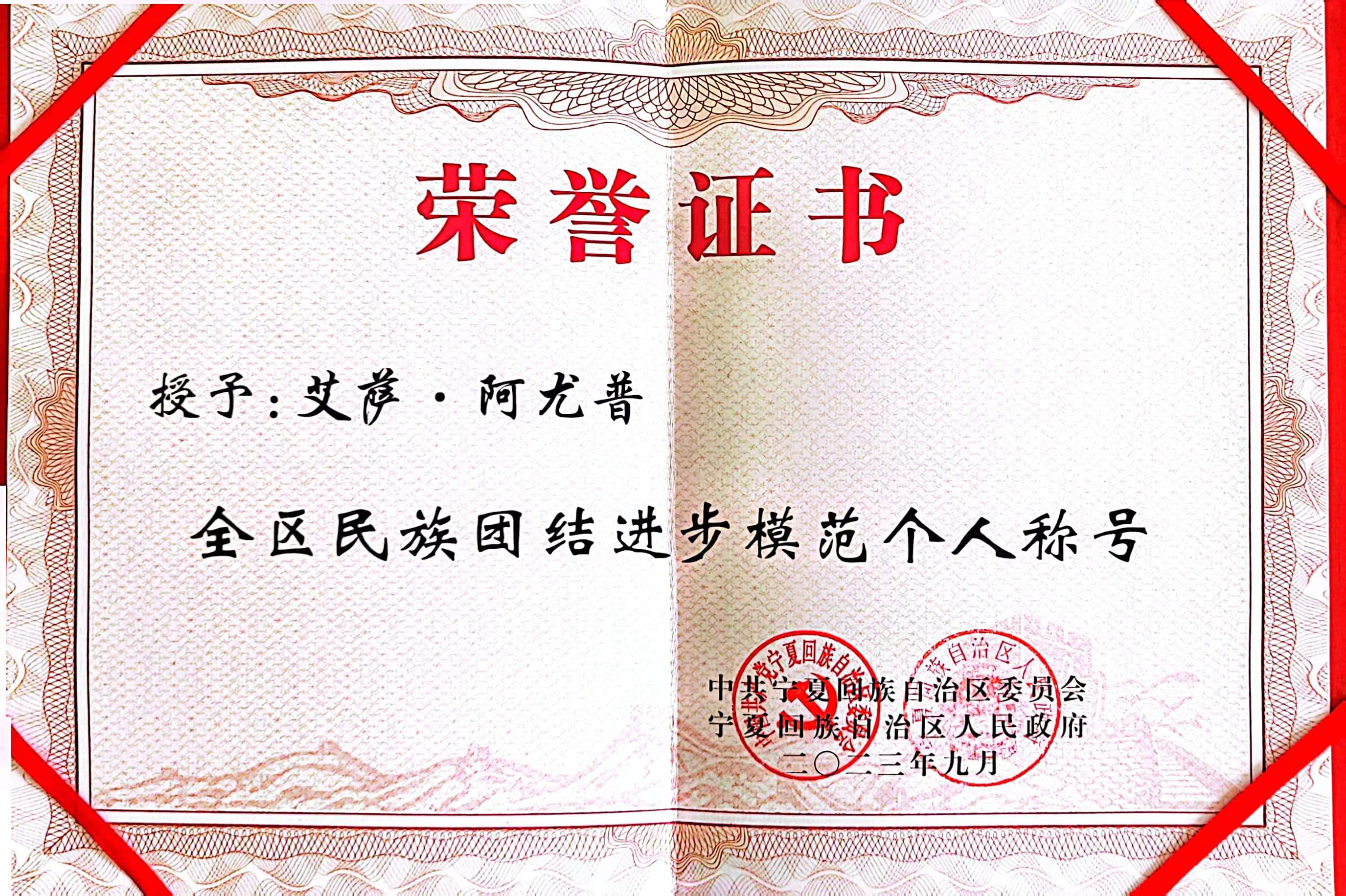【澳门十大信誉网赌大全新闻中心讯 党委统战部】9月11日,全区第九次民族团结进步表彰大会在银川召开,对近年来为民族团结进步事业做出突出贡献的模范集体和模范个人进行了表彰。信誉网赌勤学书院辅导员艾萨·阿尤普荣获“全区民族团结进步模范个人称号”。