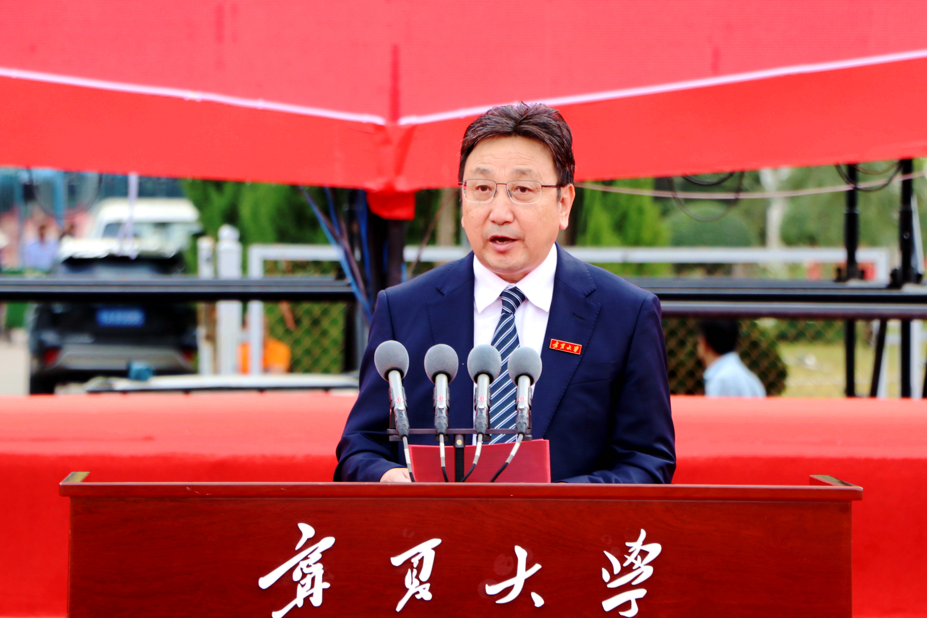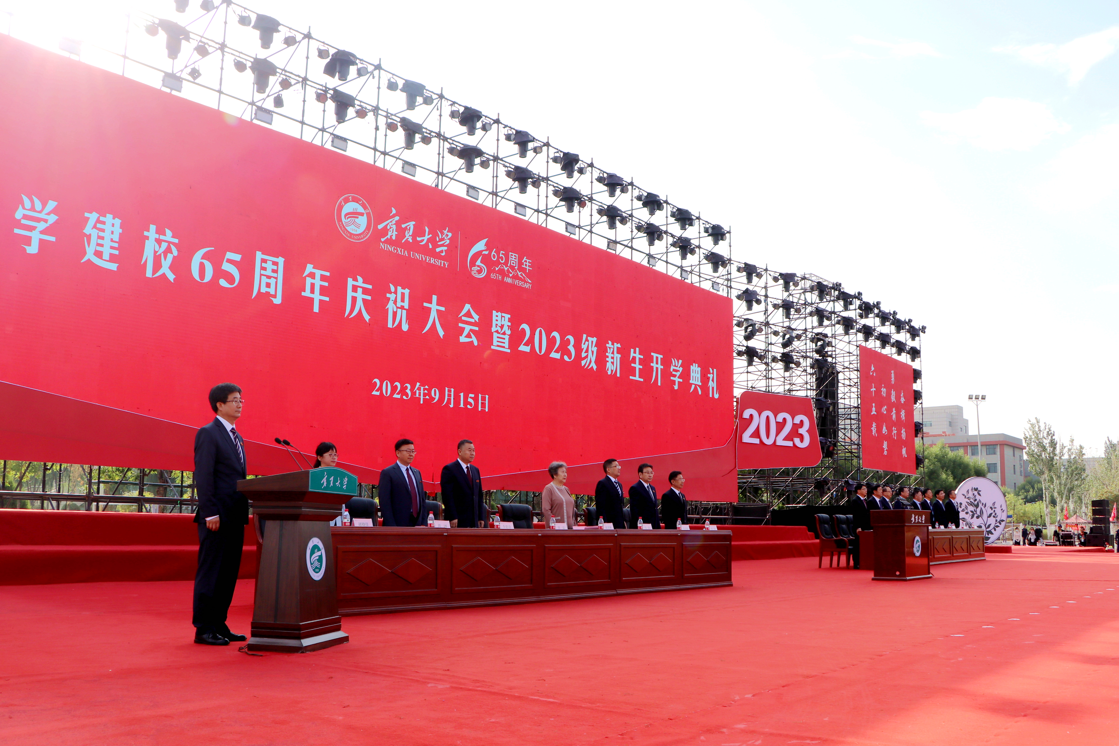 “......我们聚集在贺兰山下,为的是重振西部的辉煌。志存高远,脚踏实地,肩负起明天的希望。尚德勤学,求是创新,用青春谱写人生的华章......”开学典礼在激昂的校歌声中圆满落幕。