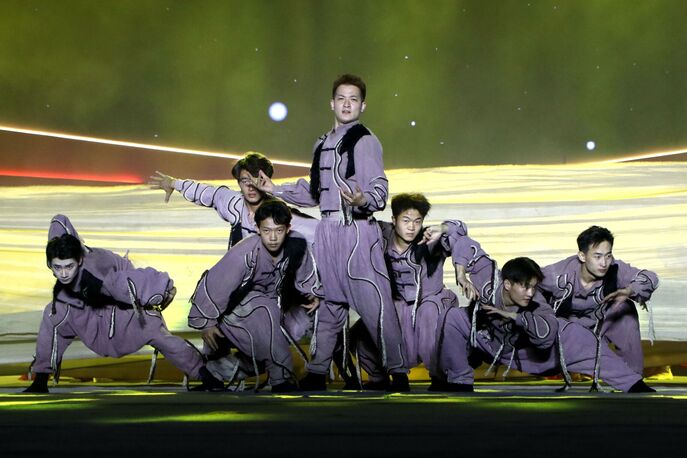 在第三篇章,舞蹈《一盏灯》,表达了母校这盏明灯永远为一代代学子点亮人生前行的路,赋予宁大人智慧与力量;音诗画《为我们喝彩》以钢琴、古筝、太极拳、书法和绘画共同演绎经典乐曲《黄河》,展示了澳门十大信誉网赌大全的美育教育和校园文化建设发展的蓬勃景象;舞蹈《当惊世界殊》映现了美丽的塞上江南物产丰富、人杰地灵,表达了勤劳的人们勠力同心、共创未来的决心和壮举。
