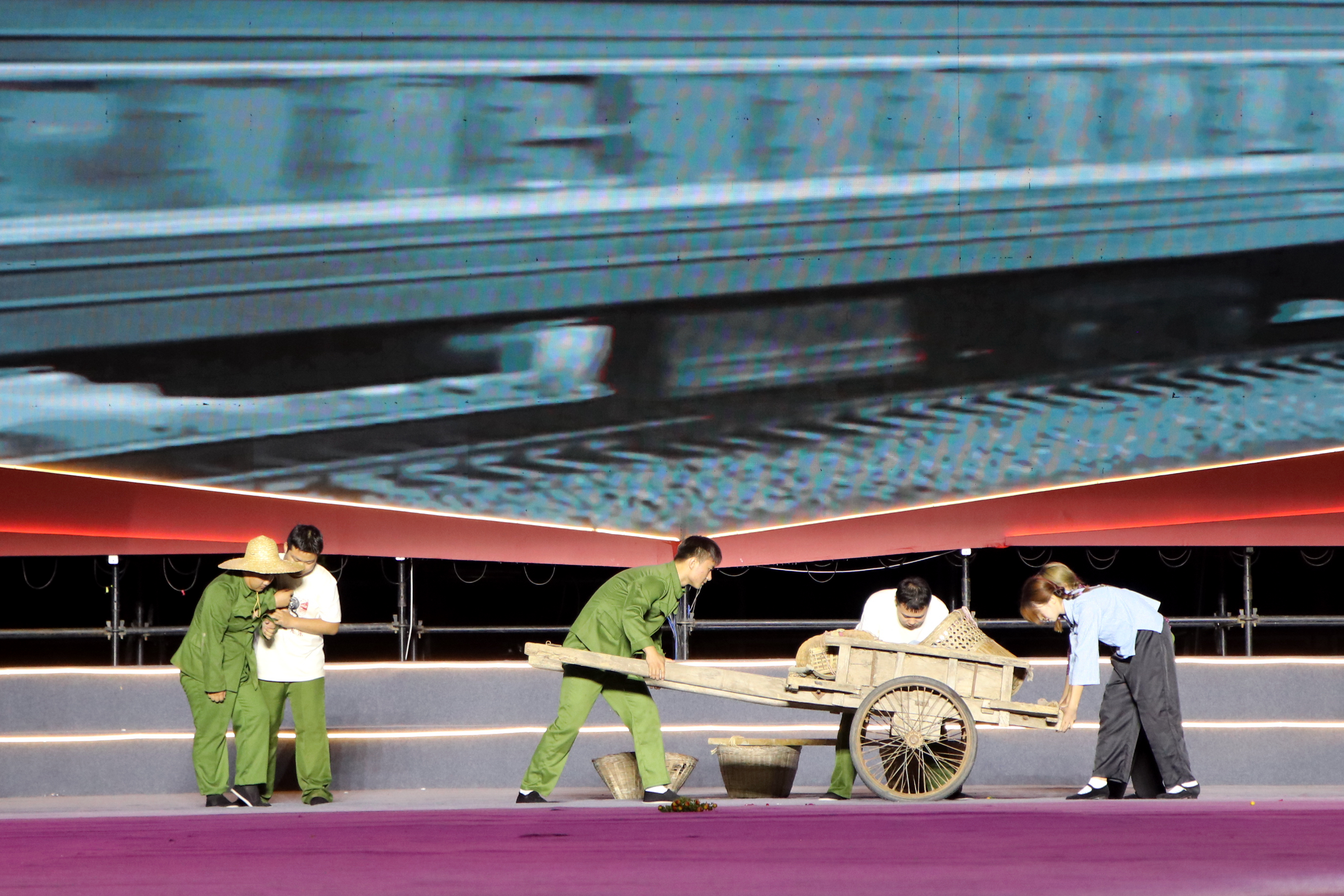 在第一篇章,女子群舞《风》展现了沙枣随风落下,在沙地里生根发芽、茁壮成长、开花结果的生机景象;曾获得全区大学生“话剧团课”比赛一等奖的话剧《沙枣花开》,讲述了祖孙三代宁大人扎根西北、奉献宁大的感人事迹;少儿舞蹈《听爷爷讲那过去的故事》,用充满童真童趣的舞蹈编排,通过情景再现的艺术手法生动呈现了“沙枣树”的故事。