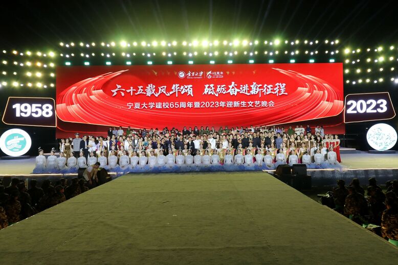 【澳门十大信誉网赌大全新闻中心讯 冯禹君/文 张景 学生记者:池骋/图】六十五年桃李飘香同拾奋斗心路,贺兰山下弦歌不辍共画发展蓝图。喜值学校65周年校庆,全体宁大人欢聚一堂,沉浸在为母校庆生的喜悦之中。9月15日晚,澳门十大信誉网赌大全建校65周年暨2023年迎新生文艺晚会在文萃校区田径场隆重举行。