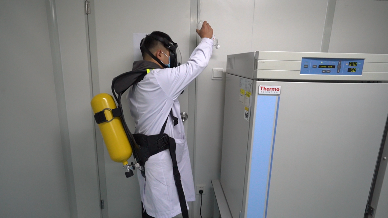 此次演练设置了“超净工作台起火”“细胞室气瓶泄露窒息”两个应急处置场景,用实战演练、现场讲解方式呈现了生物实验室重大安全事故引发原因、事故预防措施、应急处置措施。“超净工作台起火应急演练”模拟了实验人员对超净工作台内部使用75%的酒精进行擦拭后,未进行良好通风,直接点明火,造成酒精蒸汽的爆燃,并引燃操作人员衣物和头发的情景。“细胞室气瓶泄露窒息应急救援演练”模拟了细胞房二氧化碳气瓶泄漏,实验室通风系统故障,氧气补给不足造成人员窒息的场景。