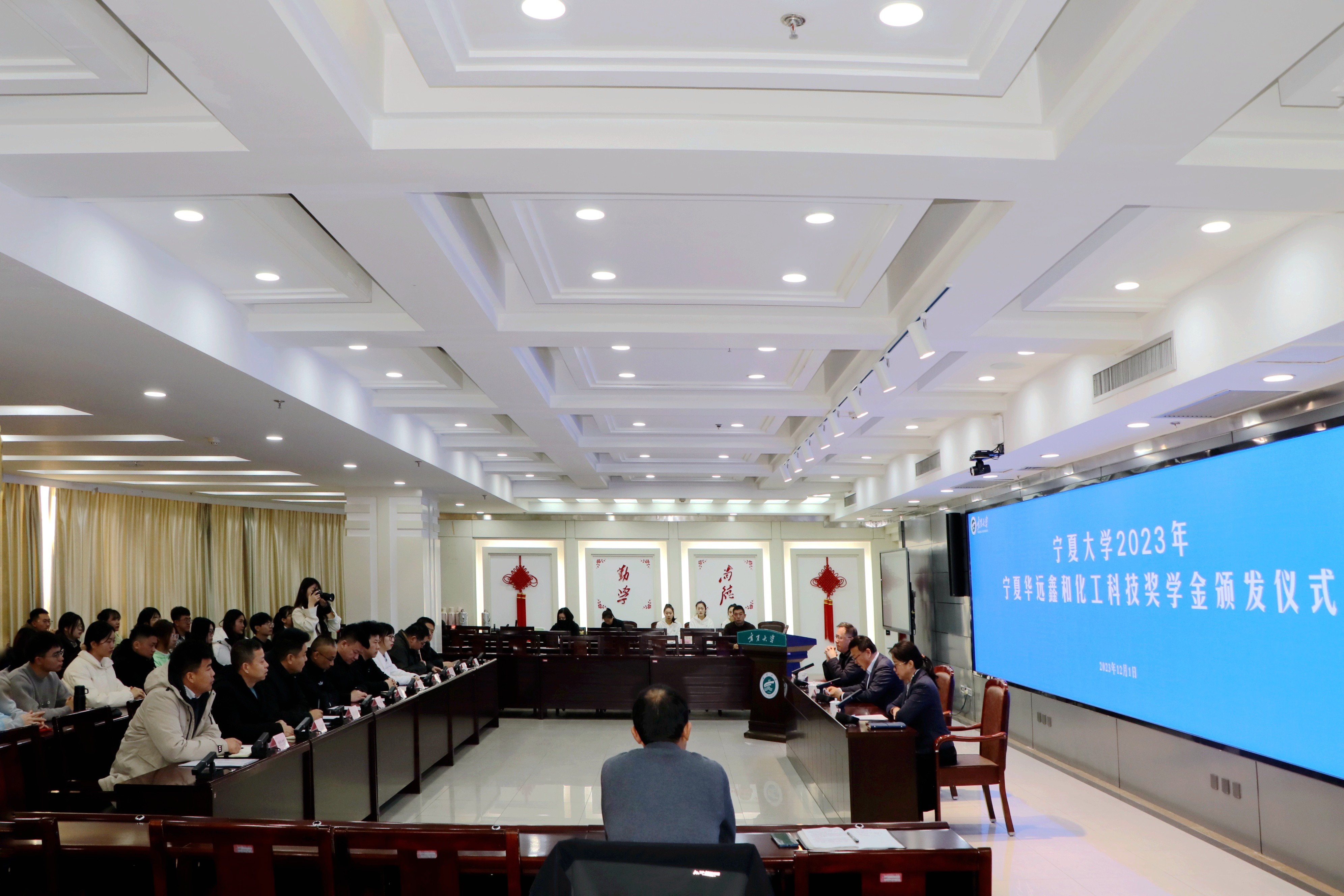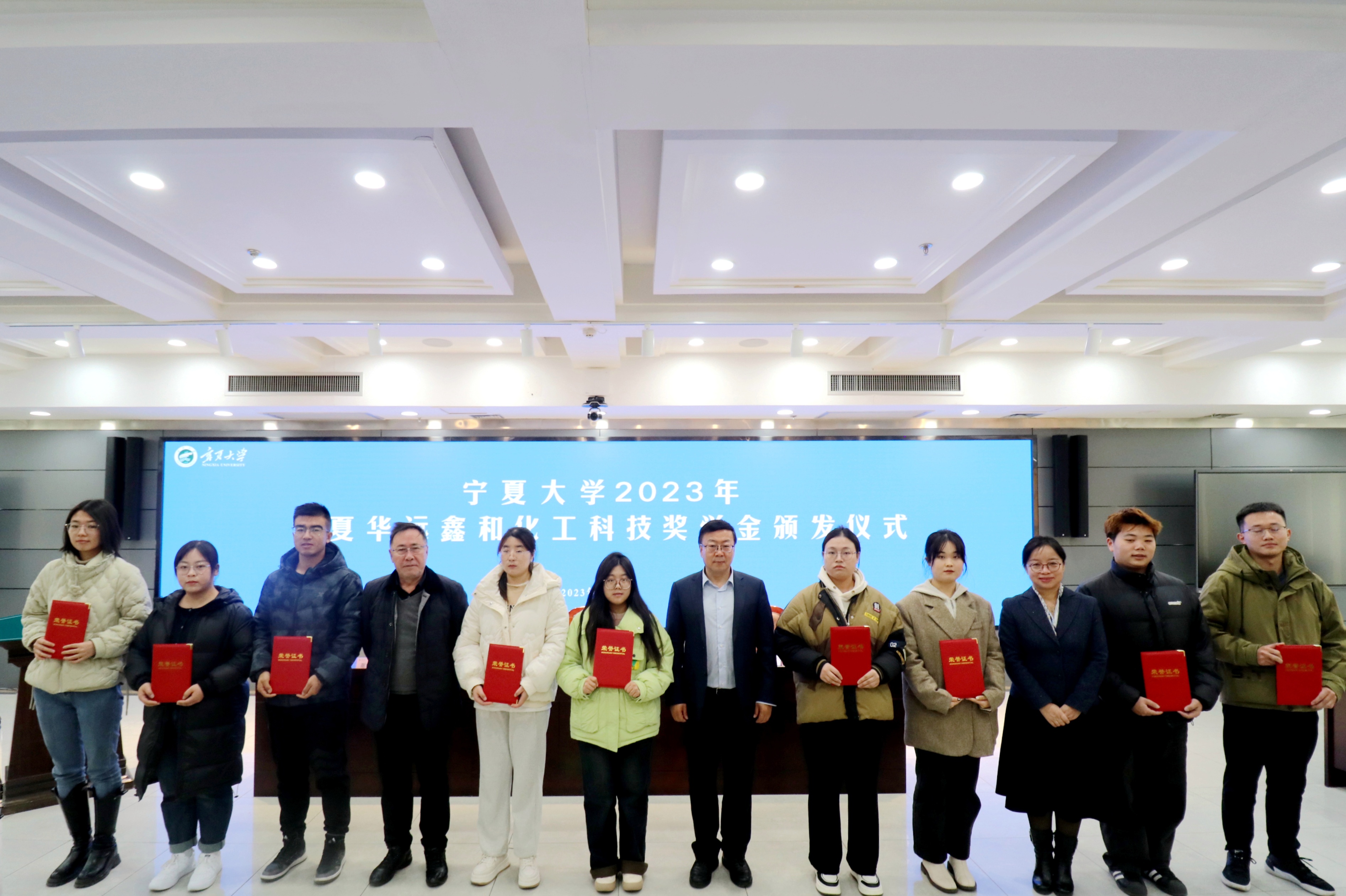 会上,赵晓佳宣读《2023年宁夏华远鑫和化工科技奖学金获奖学生名单》,与会领导为获奖学生颁发荣誉证书。