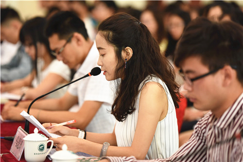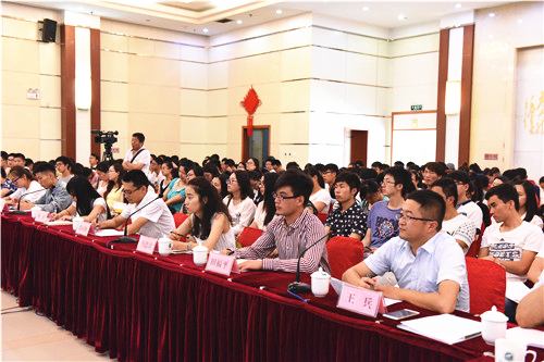 报告会前,农学院2015级动物生产系统工程专业张同刚、人文学院2014级比较文学与世界文学专业靳祺、音乐学院2015级少数民族艺术专业马思琪、信息工程学院2013级计算机科学与技术专业娄尘哲、土木与水利工程学院2013级土木工程专业田福平、经济管理学院2013级工商管理专业纳莉多、葡萄酒学院学生工作办公室主任王兵、化学化工学院教师吴晓红等8位师生代表结合各自的工作和学习的实际,表达了为伟大中国梦的实现贡献青春和力量的决心。