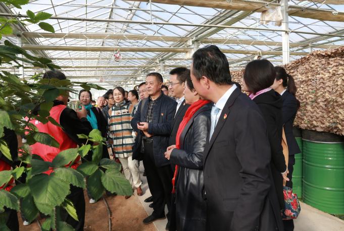 仪式开始前,100多名党员通过看音像图片展览,听村镇干部介绍详细了解了闽宁镇精准扶贫“光伏农业”大棚模式、红树莓产业项目、价格销路、市场前景以及带动移民就业、促进移民增收等情况。
