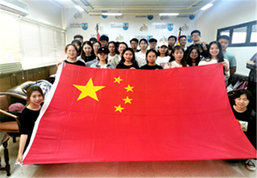 阿拉伯学院2017级海外访学学子身处他乡,却时刻心系祖国,六个小时的时差也挡不住他们的爱国热情。北京时间10月1日早十点,所有海外学子齐聚语言中心,手持国旗,与万千同胞共同观看国庆七十周年阅兵,为中国崛起呐喊。