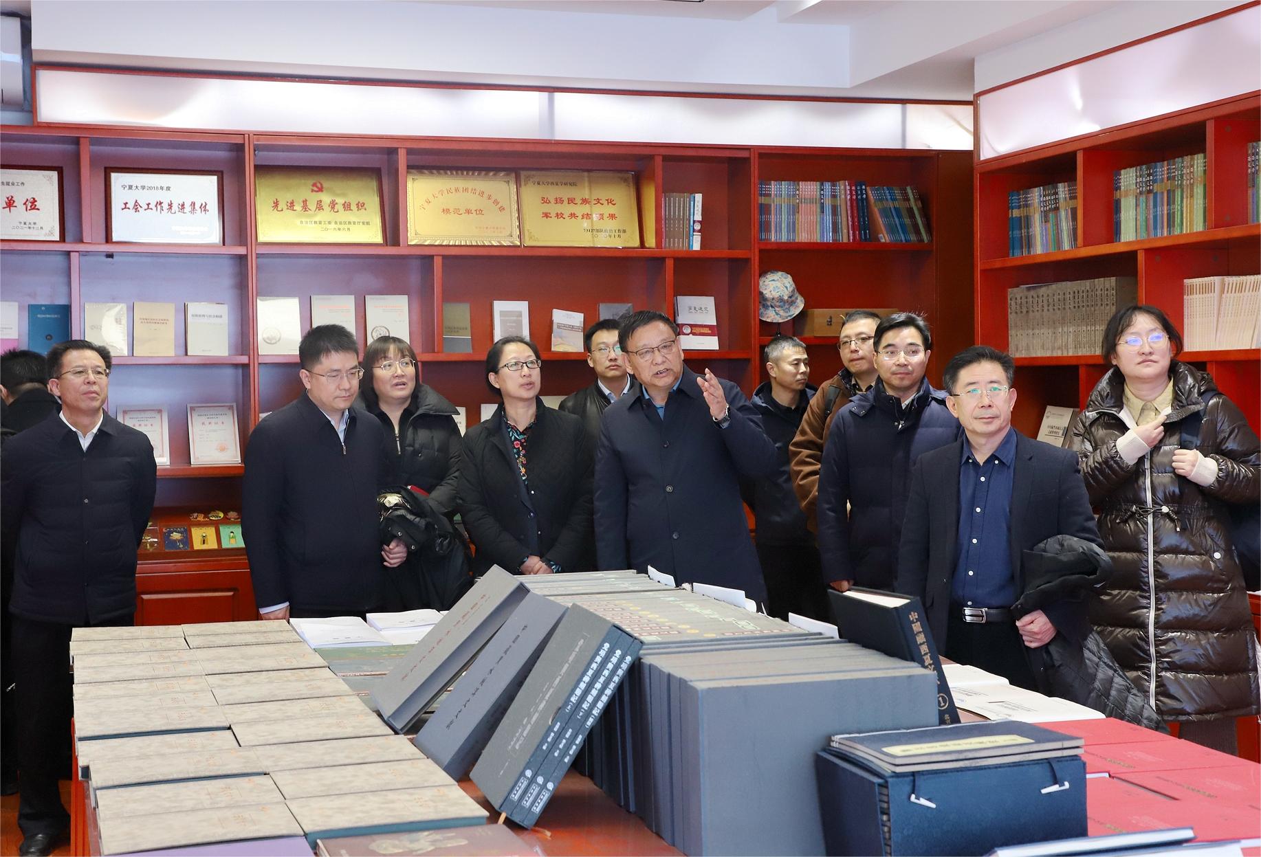 宋磊一行在校党委书记李星的陪同下实地调研了信誉网赌中华民族共同体研究院、西夏学研究院、省部共建煤炭高效利用与绿色化工国家重点实验室、校企联合研发创新体、西北土地退化与生态恢复国家重点实验室培育基地建设及人才引育情况,并在德勤楼天台详细了解了澳门十大信誉网赌大全发展规划情况。