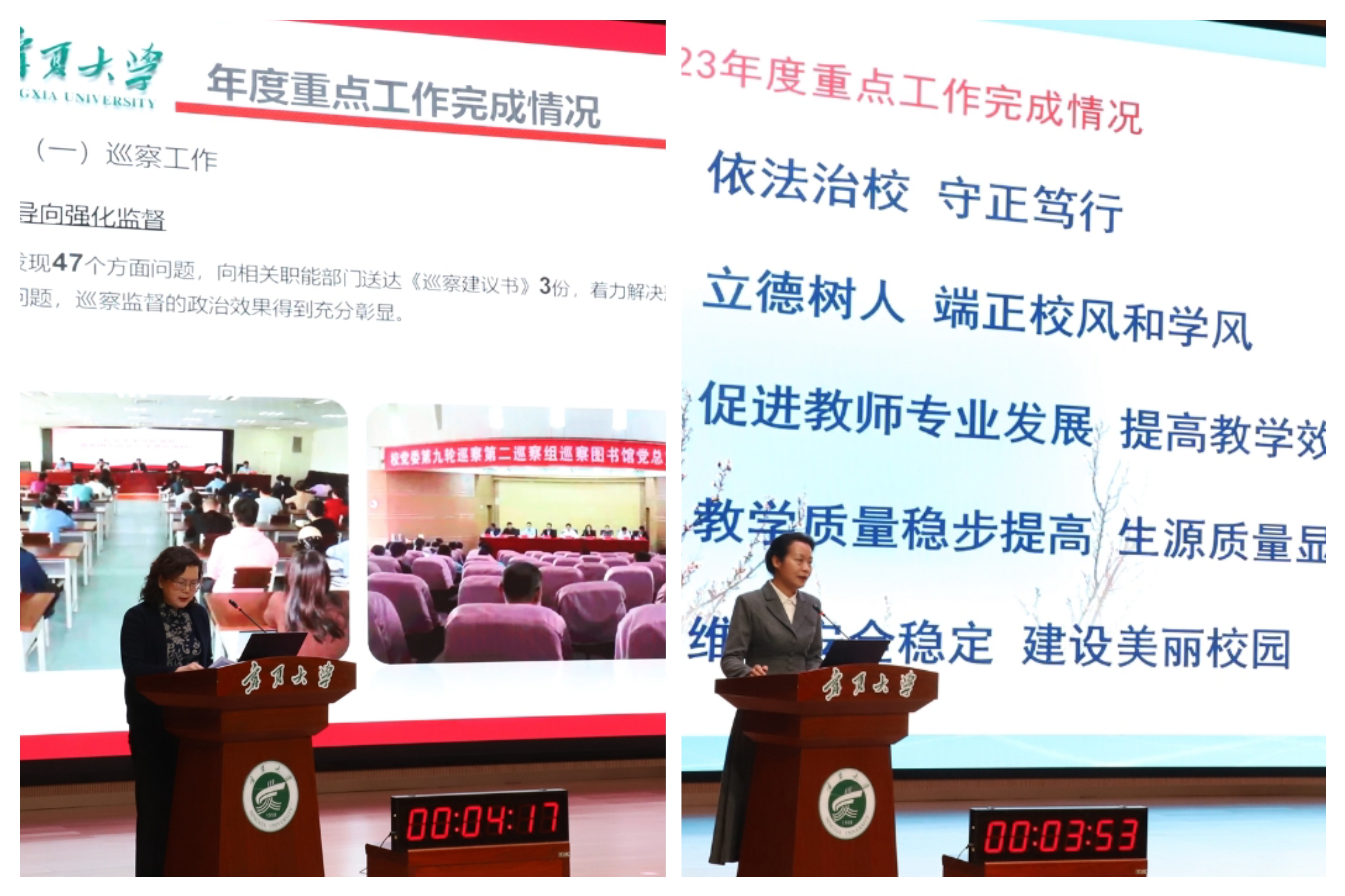 他强调,2024年学校的重点工作要牢牢坚持围绕立德树人根本任务,秉承育人为本、尊重学者、崇尚学术的办学理念和高水平开放办学、高质量内涵发展的办学之道,以立足宁夏、面向西部、服务国家战略和地方经济社会发展需求为战略导向,紧紧围绕西部一流大学建设的目标主线、重点任务的顶层设计,切实抓住影响学校高质量内涵发展的主要矛盾,聚焦全面提高学校“双一流”建设水平和高水准完成学校“十四五”规划目标任务,突出体制机制优化和高质量过程建设,统筹思考、整体谋划、厘清思路、明晰路径,切实将过去的工作、现在的思考、未来的规划有机衔接起来,拿出落实举措,实现学校更高质量的内涵发展。