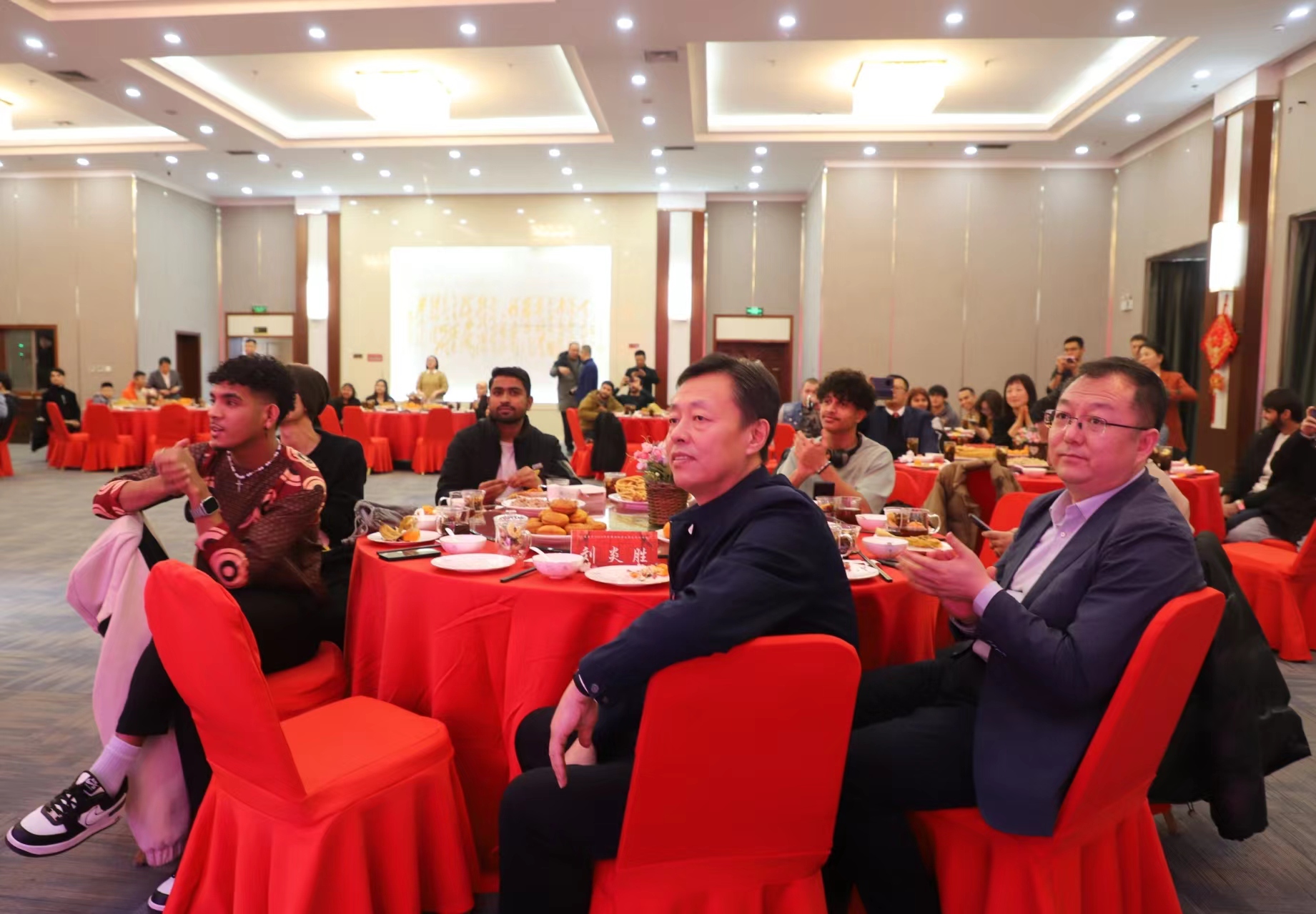 慰问现场,与会领导与留校学生围坐在一起,一边品尝着代表年味的饺子,一边亲切交谈。一盘盘饺子驱散了浓浓的乡愁,一句句暖心的问候让留校师生在这个冬日感受到了来自学校的暖暖情谊。