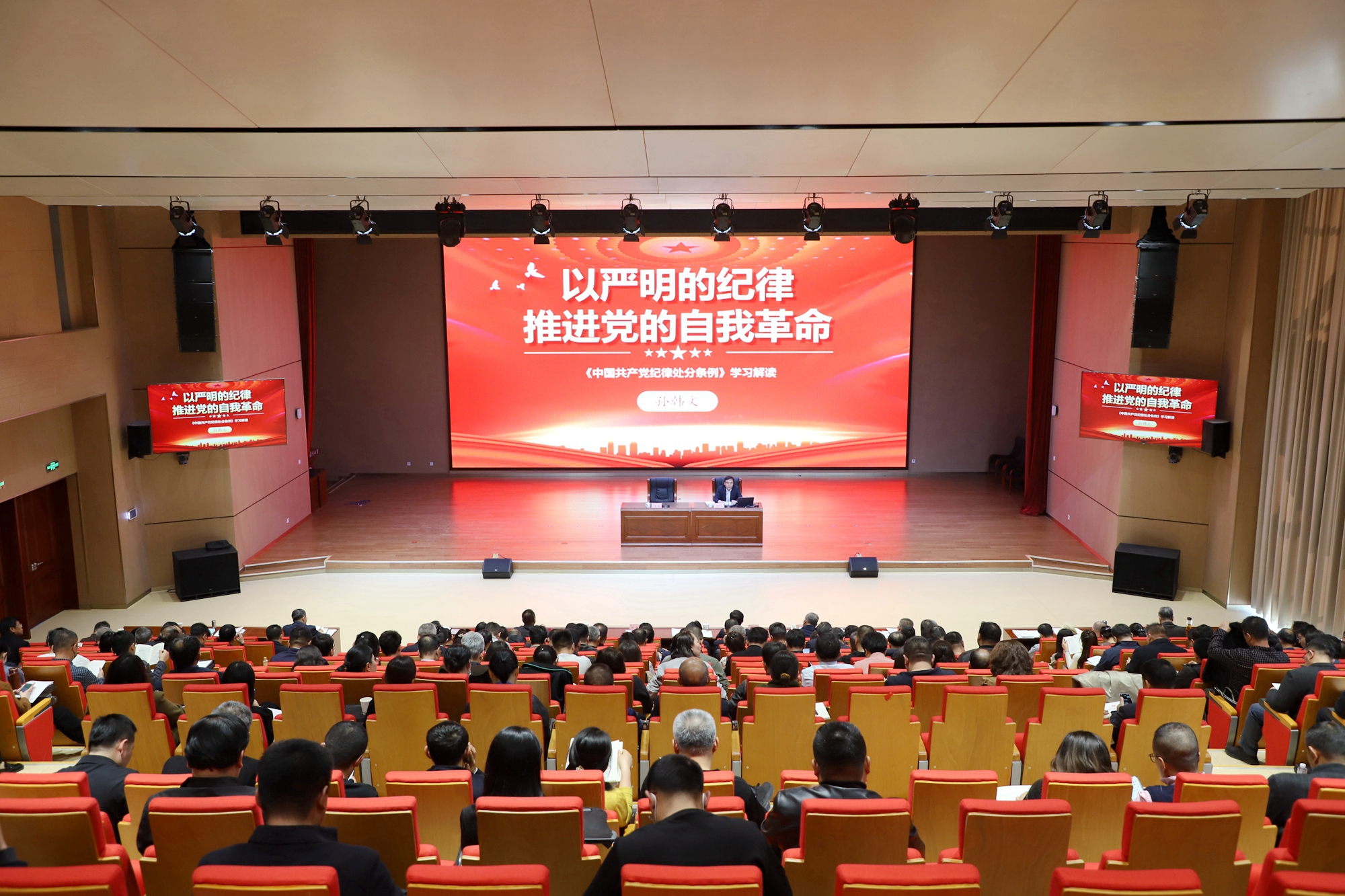 会后,自治区教育工委委员、纪检监察工委书记,自治区教育厅党组成员,自治区纪委监委驻自治区教育厅纪检监察组组长孙韩文受邀为全校中层及以上领导干部作了《以严明的纪律推进党的自我革命》专题辅导报告。报告围绕新修订的《中国共产党纪律处分条例》,从“深刻认识修订《条例》的重要意义”“准确理解和把握新修订《条例》的内涵要义和实践要求”“认真抓好《条例》的学习贯彻执行”等三个方面,对《中国共产党纪律处分条例》作了辅导解读。