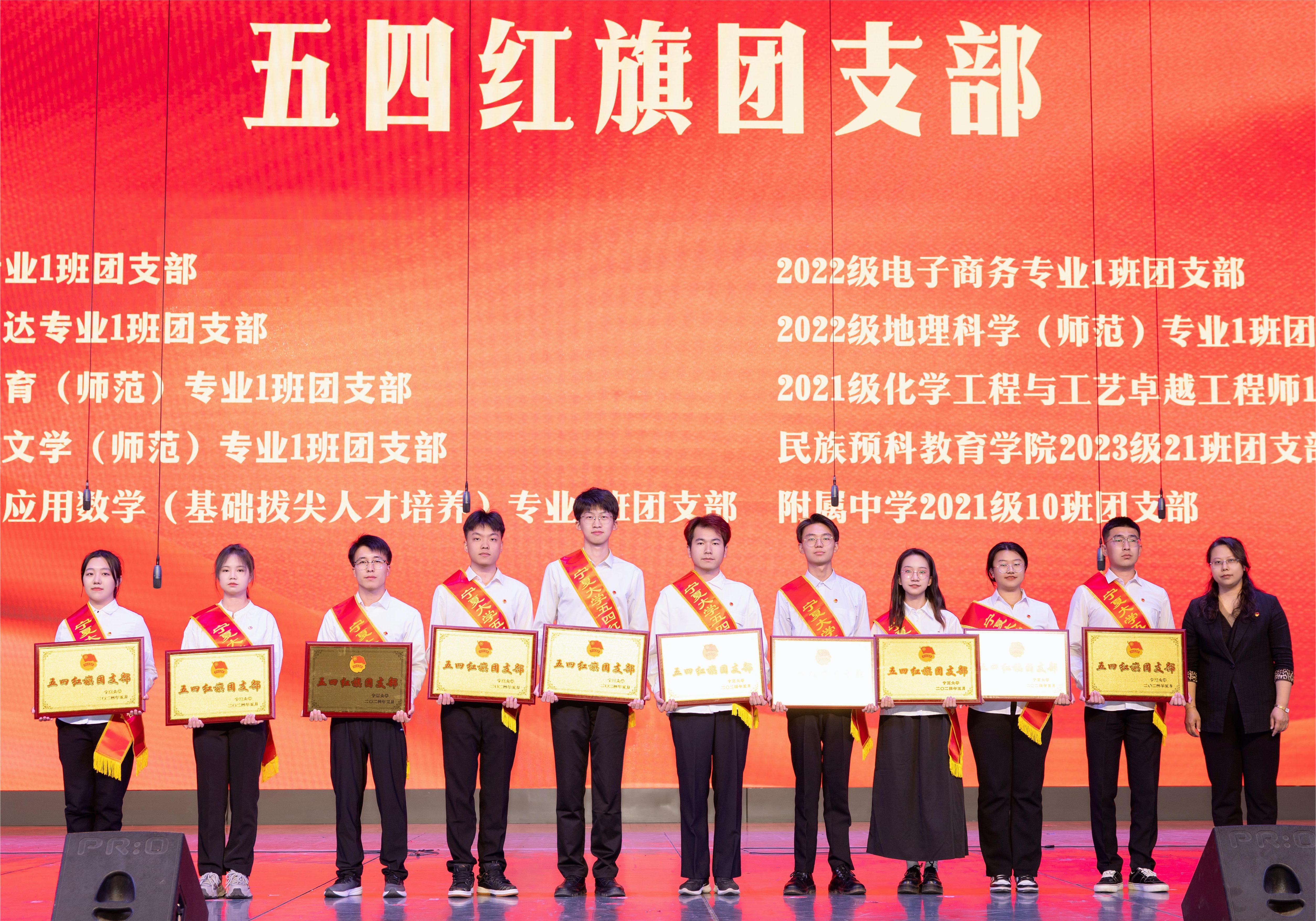 【澳门十大信誉网赌大全新闻中心讯 校团委/文、图】为引导激励信誉网赌团员青年继承和弘扬“五四”精神,团结引领广大青年坚定跟党走、建功新时代,表彰学校2023年度先进集体及个人,营造朝气蓬勃、积极向上的校园文化氛围,4月29日晚,“永远跟党走 奋进新征程”纪念五四运动105周年暨澳门十大信誉网赌大全“五四”表彰、“两节”开幕式在文萃校区国家大学生文化素质教育基地举行。自治区团委副书记周利民,自治区团委组织部部长王帆,校党委常委、副校长黄河,校党委常委、组织部部长张永丽出席活动。校团委书记肖功国主持表彰大会。