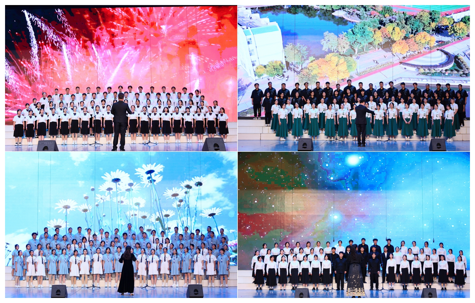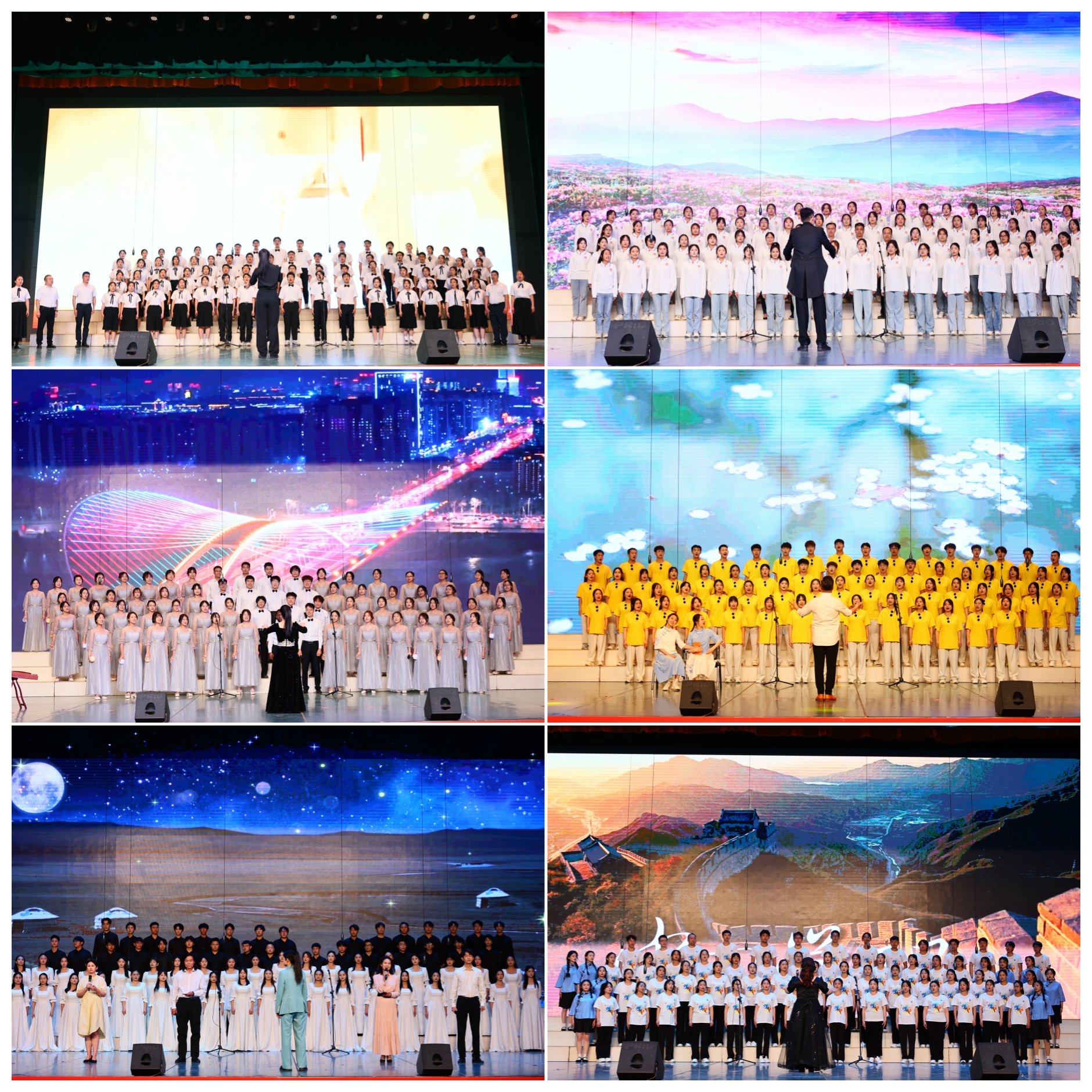 青春歌会在“沙枣花香”大学生艺术团献唱的《一起向未来》中精彩开场。九支队伍接连带来《仰望星空》《映山红》《南泥湾》《小美满》《黑猫警长》《中国觉醒》《海阔天空》《上春山》《飞云之下》等精彩纷呈的合唱歌曲。歌会在“沙枣花香”大学生艺术团的《我喜欢》中完美落幕。