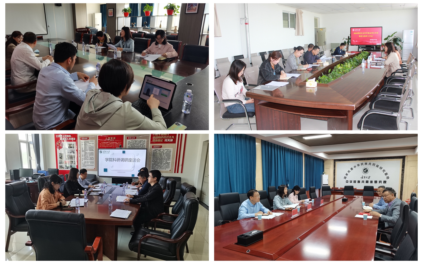 调研会上,各学院汇报了2024年国家社会科学基金项目申报工作推进情况和自治区第十六届哲学社会科学成果奖申报意向情况。部分学院还介绍了人才队伍、平台建设、科研成果、科研规划等相关情况。
