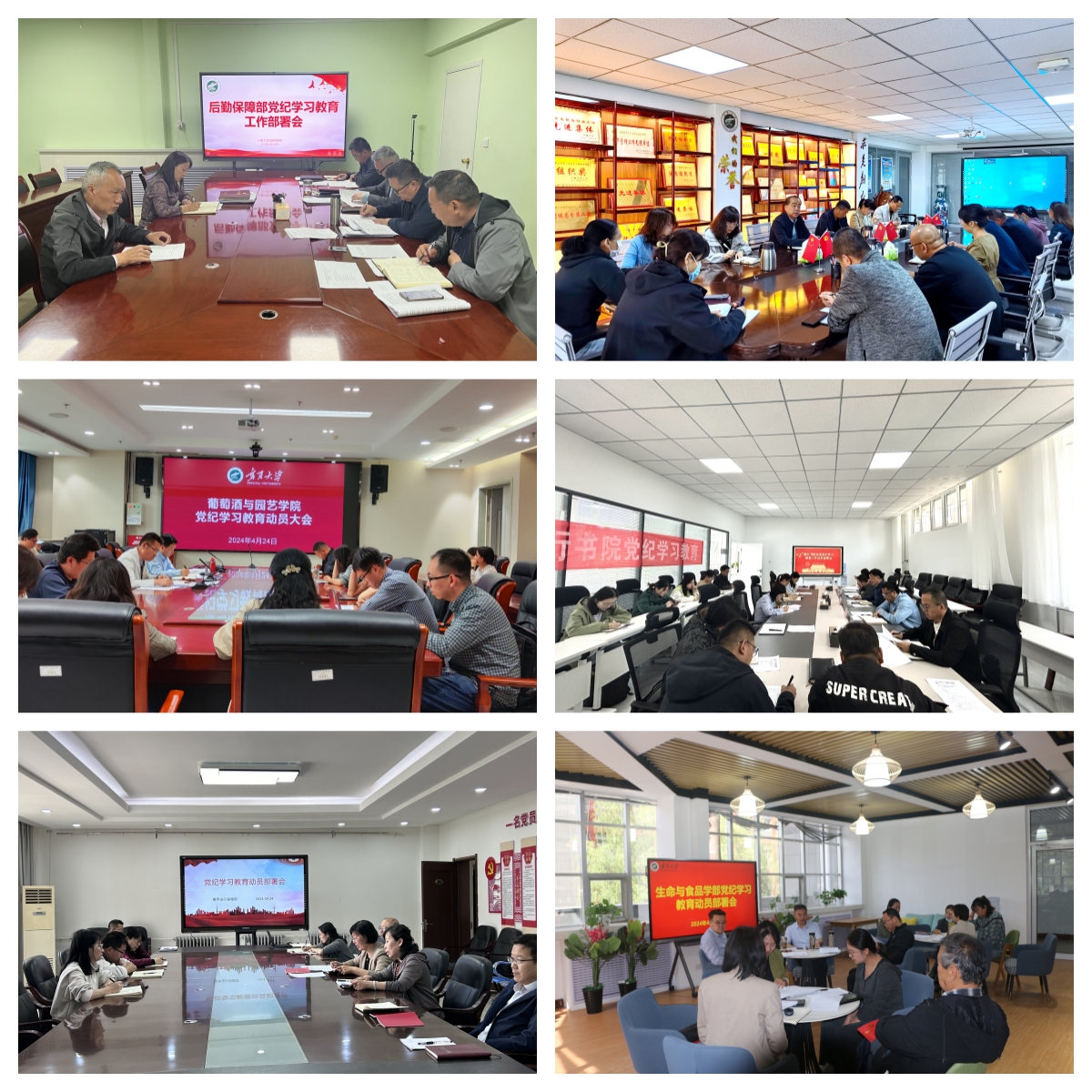 葡萄酒与园艺学院举办党纪学习教育专题党课,学术期刊中心以“严守政治纪律,办党和人民放心期刊”为主题进行专题研讨,励行书院邀请学校党委专职组织员以“学党纪 强党性 明纪律 守底线”为题作党纪学习教育专题辅导报告。守正书院体育教育学生党支部带领支部党员、党员发展对象及入党积极分子前往西夏区人民武装部开展党纪学习教育主题党日活动,并在西夏区人民武装部读书室共同学习新修订的《中国共产党纪律处分条例》,观看违法案例视频。发展规划与学科建设处联合党委统战部,生命与食品学部联合生命科学学院、林业与草业学院、农学院,工程与地理学部联合励行书院前往自治区廉政警示教育中心、灵武市党员干部警示教育基地开展联合主题党日活动,通过反面典型案例和聆听楷模事迹,进一步增强全体党员干部的责任担当和廉洁自律意识,真正让纪律内化于心、外化于行。