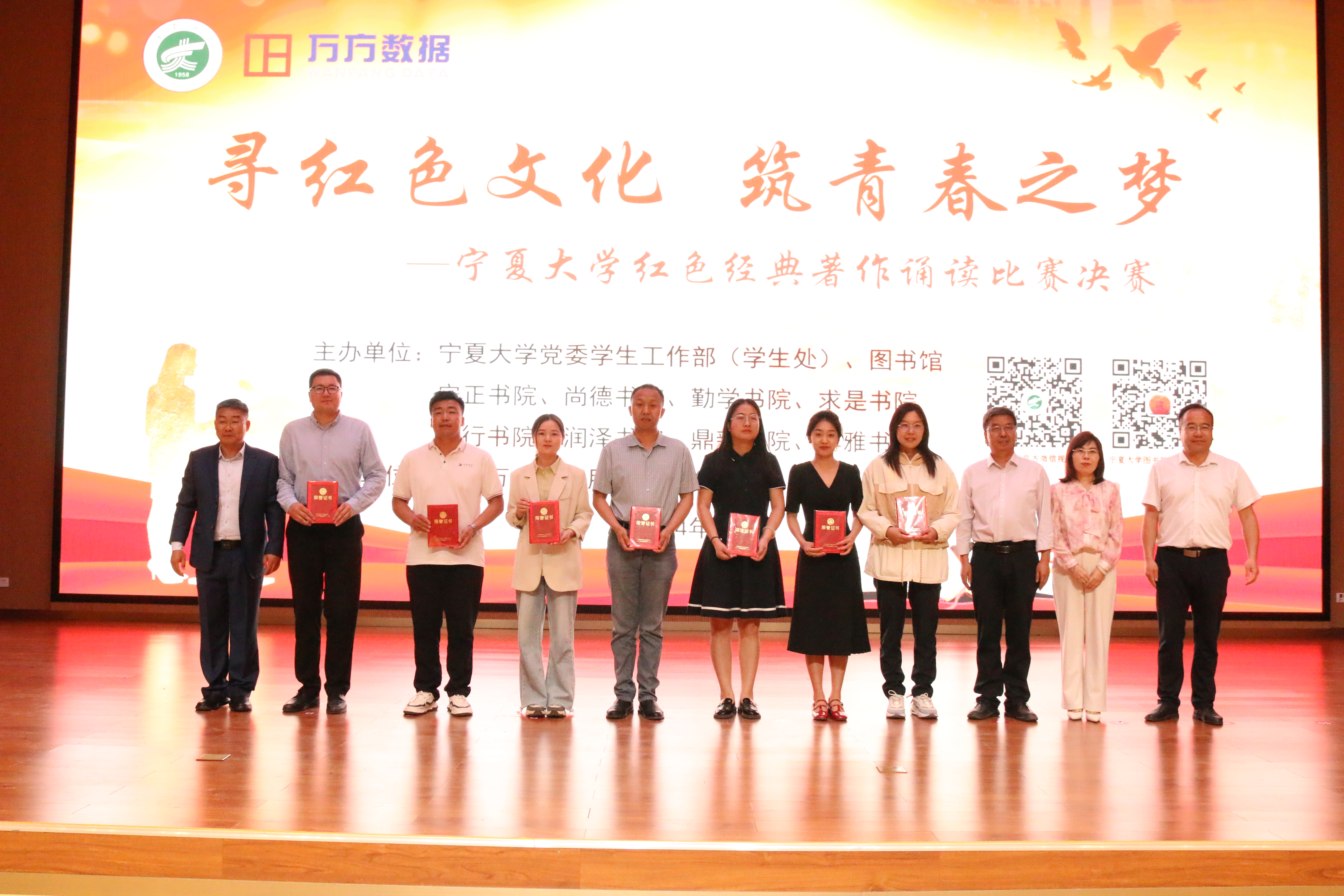 【澳门十大信誉网赌大全新闻中心讯 图书馆】为激励广大师生诵读红色经典,传承红色基因和革命精神,弘扬红色文化,增强青年学生的民族自豪感和爱国热情,由党委学生工作部(学生处)、图书馆、各书院主办,北京万方数据股份有限公司协办的“寻红色文化 筑青春之梦”红色经典著作诵读比赛决赛于5月15日在贺兰山校区笃行楼报告厅隆重举行。校党委常委、副校长黄河,北京万方数据股份有限公司成都公司总经理吴启迪,党委学生工作部(学生处)、图书馆与各书院相关负责人出席决赛现场。