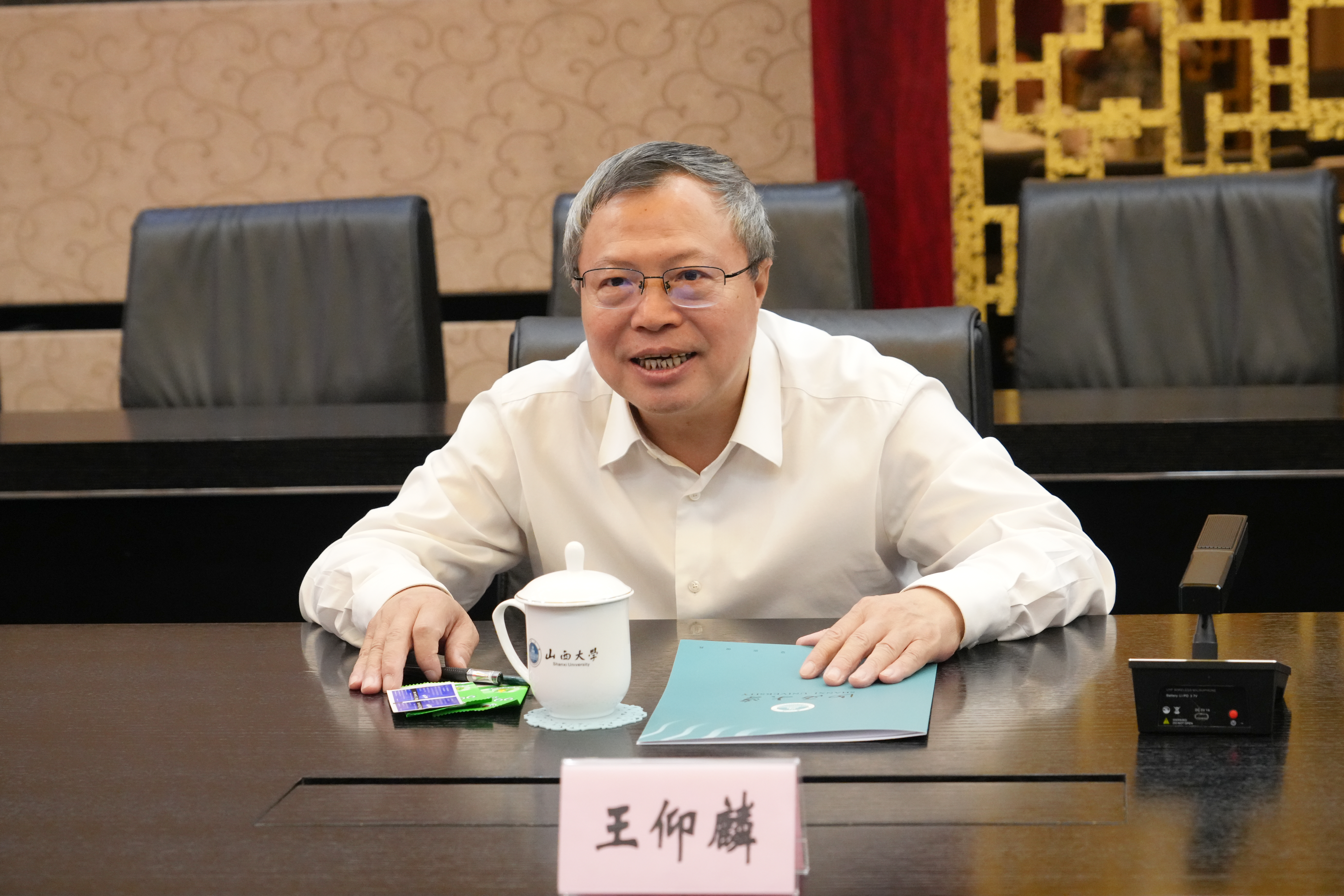王仰麟对李星一行来访表示欢迎,并就山西大学的历史沿革及治理体系改革、高层次人才引进、学科布局优化调整等方面的相关举措作了介绍。他表示,两校地缘相近、文缘相通,同为部省合建高校、“双一流”建设高校,双方在学科建设、人才培养等方面面临着共同的机遇与挑战,希望双方今后能加强交流,强化合作,互学互鉴,携手共进。
