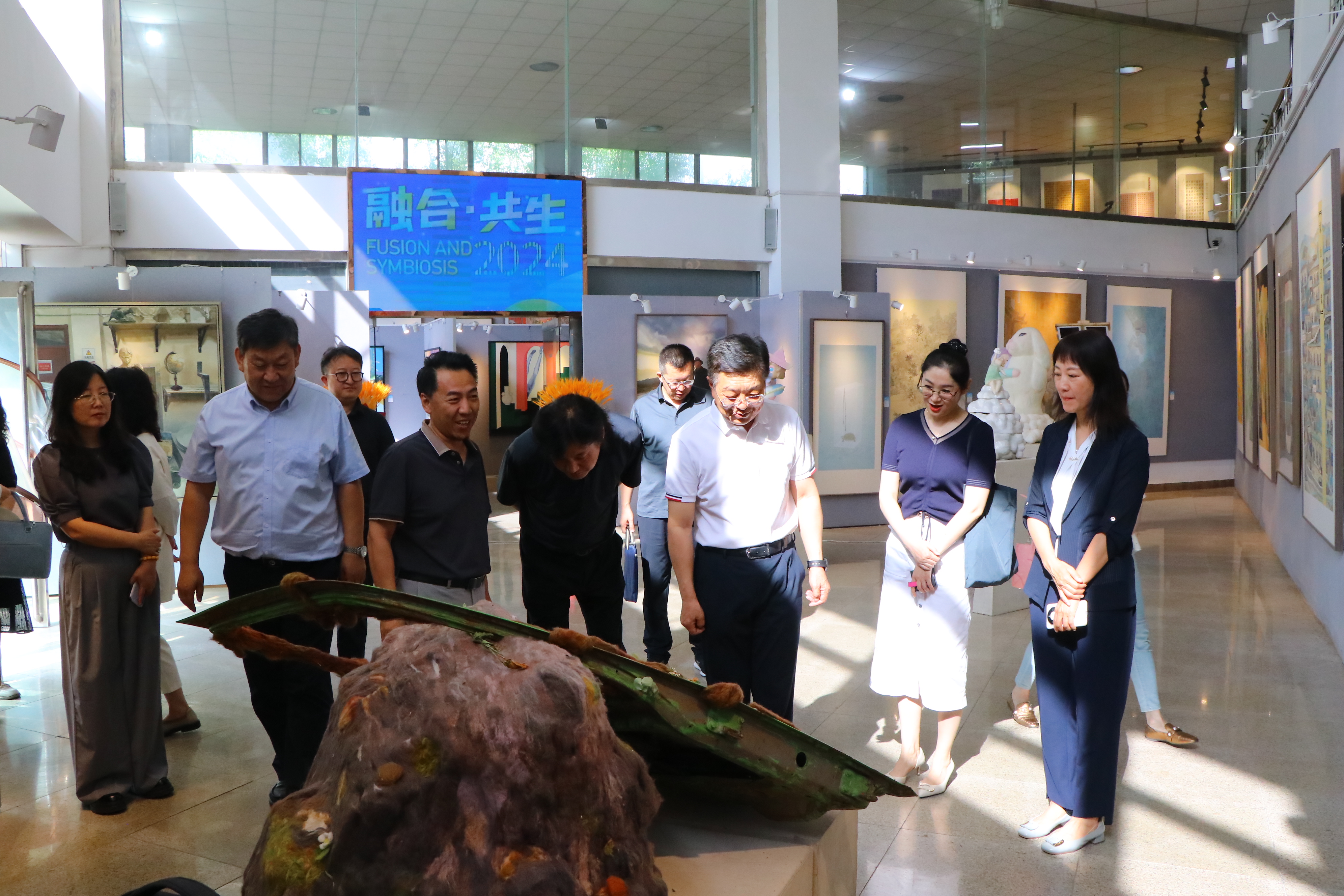 黄明旭一行在美术学院观赏了学生绘画展品、文创产品和雕塑作品,在音乐学院参观了音乐厅和学院文化墙,观看了舞蹈排练,了解了两个学院的发展历史、师资队伍建设、人才培养和科研项目开展情况。