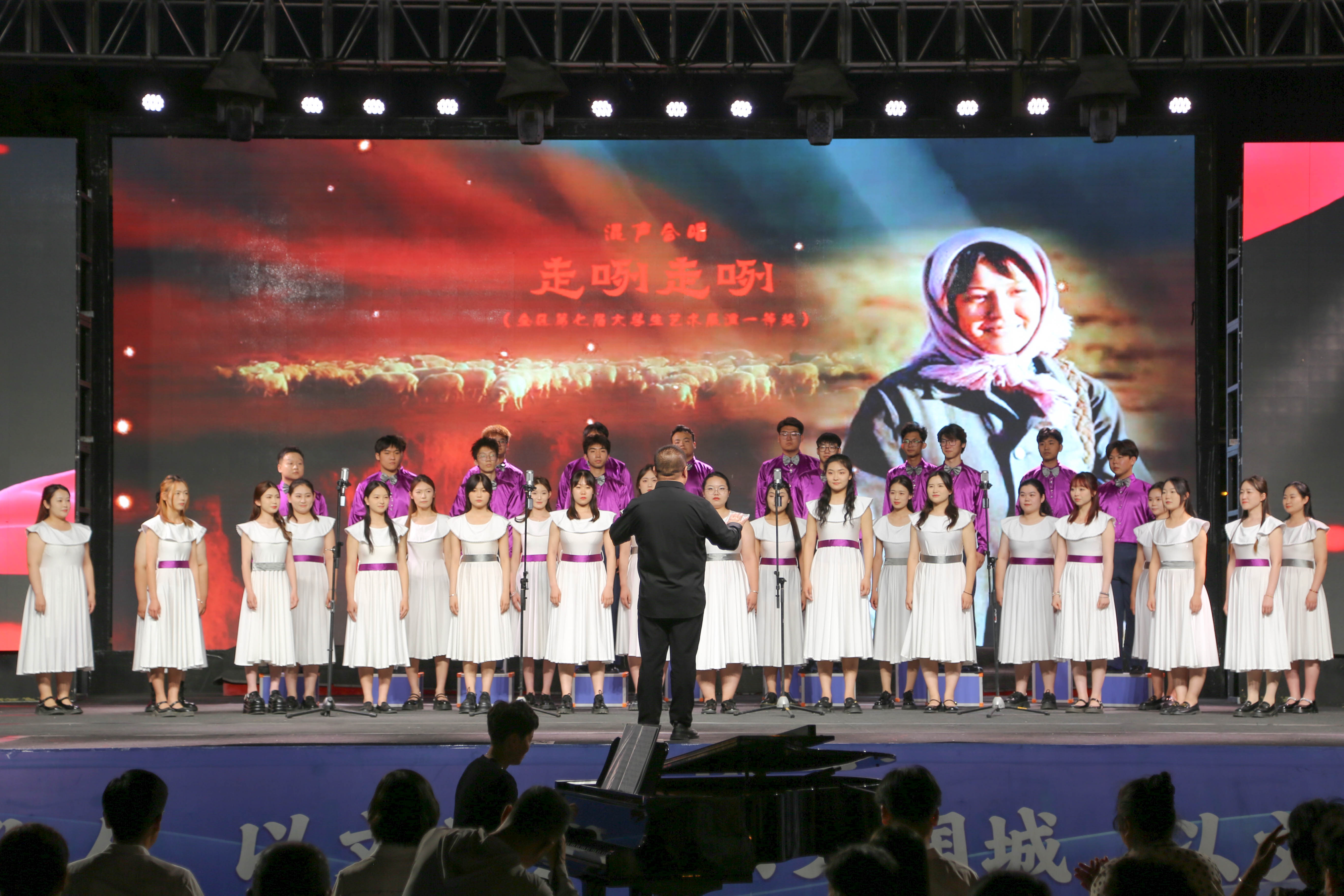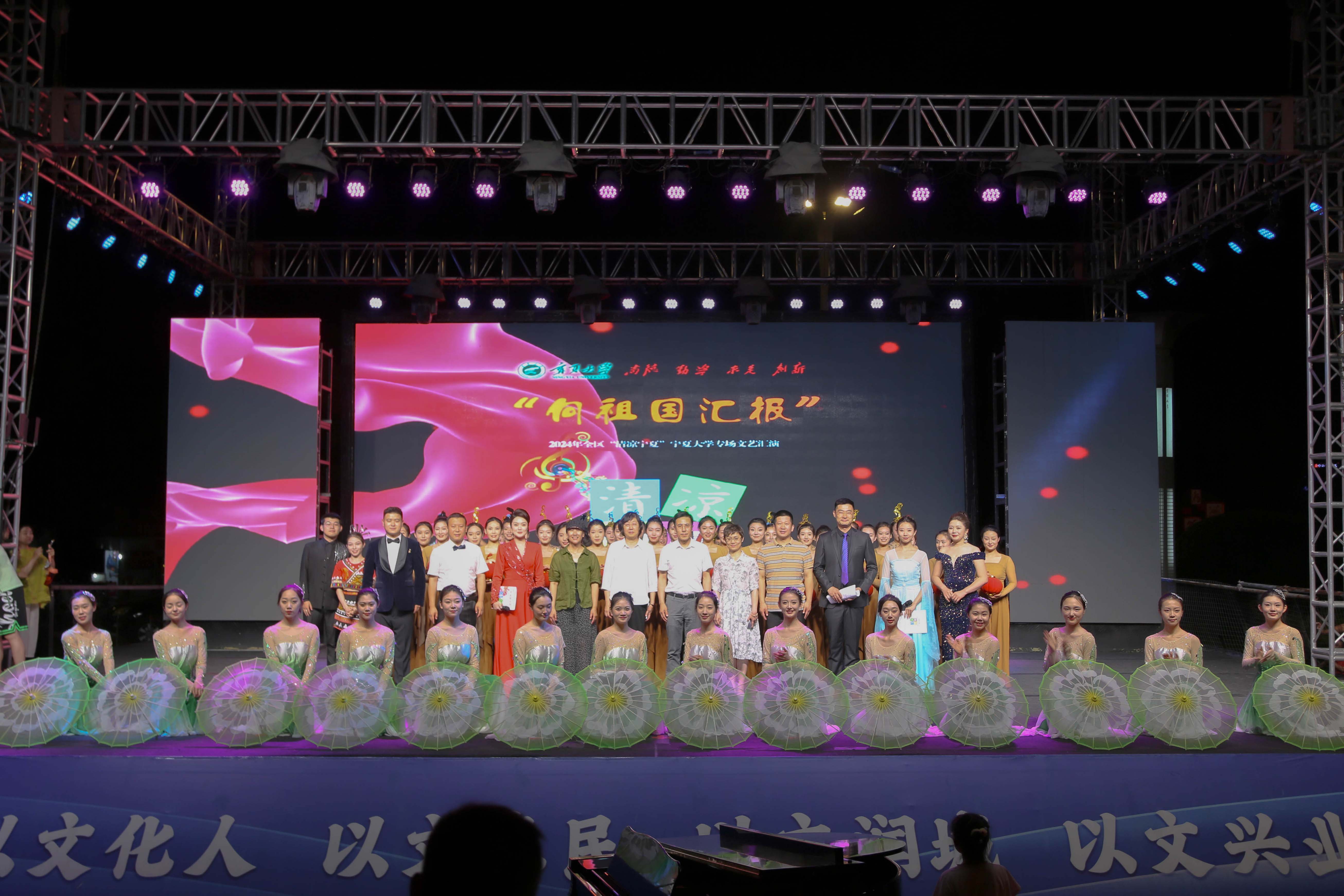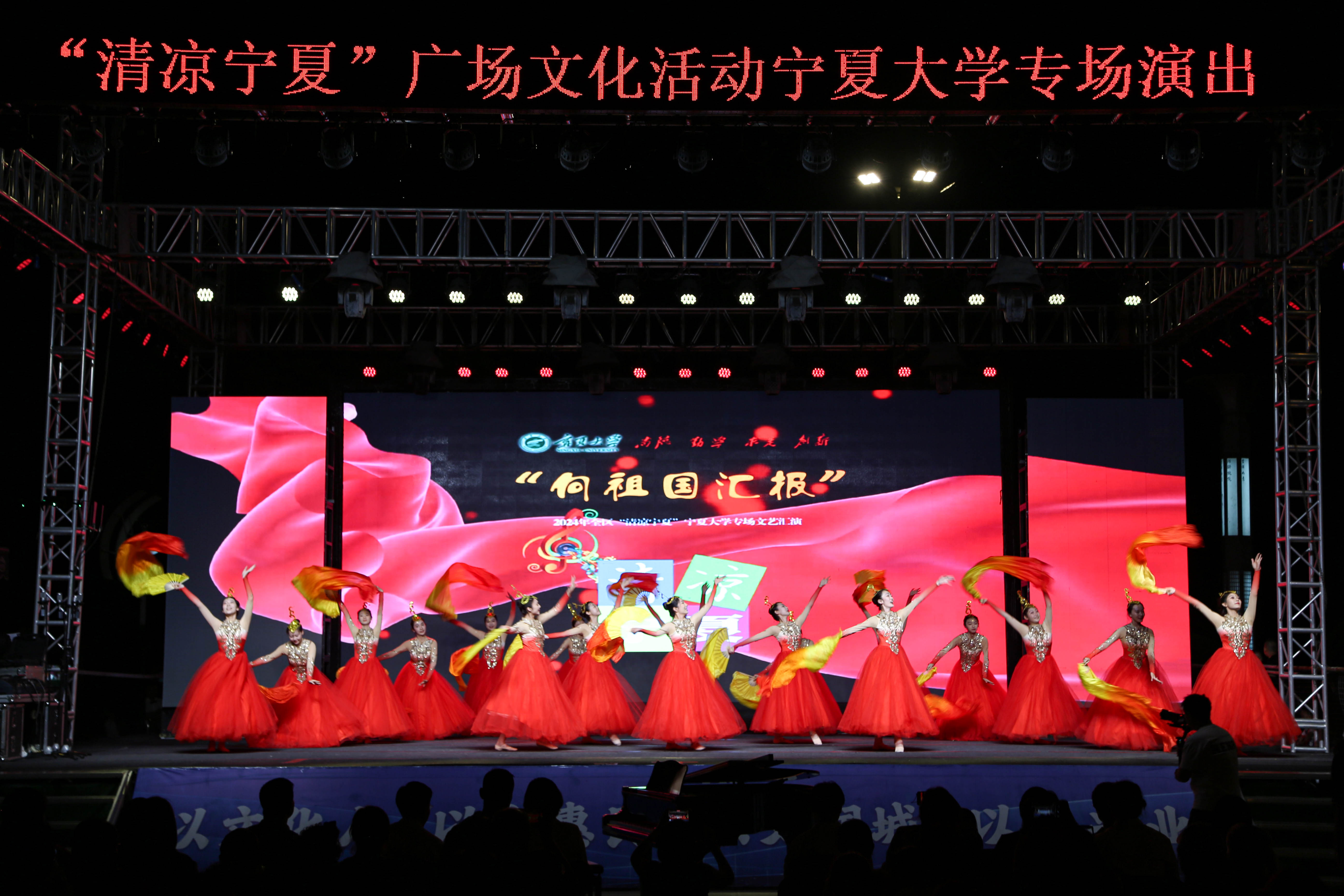 【澳门十大信誉网赌大全新闻中心讯 李明花/文 文轩轩 程博/图】为深入学习贯彻习近平文化思想,喜迎新中国成立75周年,由自治区党委宣传部、文化和旅游厅、财政厅主办,澳门十大信誉网赌大全承办的“向祖国汇报——澳门十大信誉网赌大全艺术实践经典展演”2024年全区“清凉宁夏”澳门十大信誉网赌大全专场文艺汇演于6月14日晚在光明广场精彩上演。校党委副书记韩惠丽,校党委常委、宣传部部长高永兴及音乐学院党政领导与市民一同在现场观看。