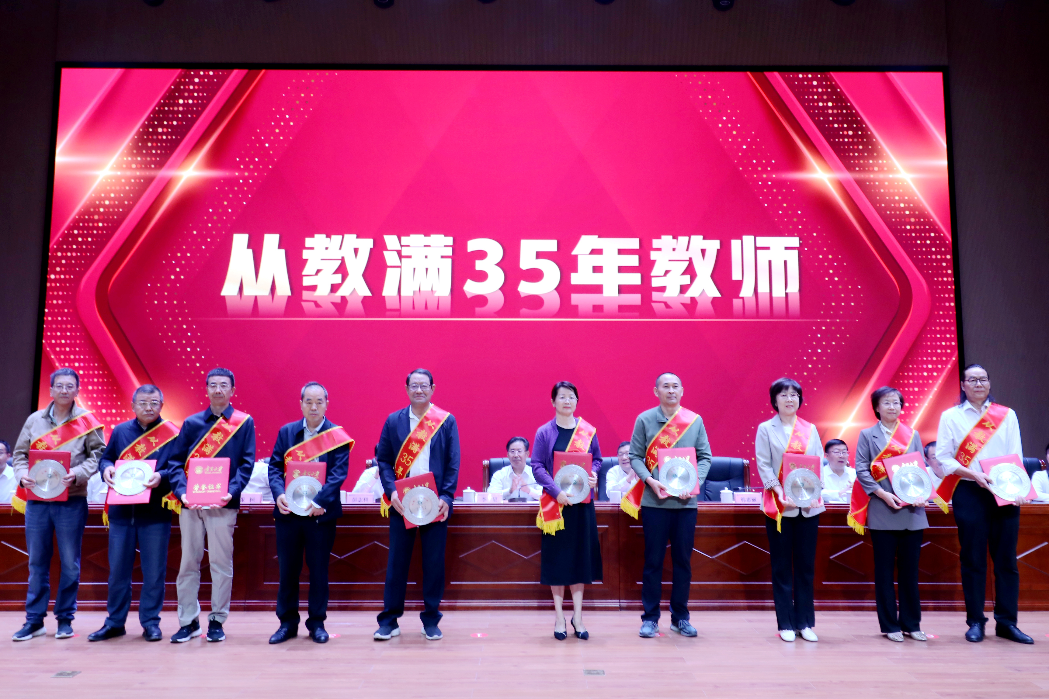 各单位党政主要负责人、2023年度“国家重大人才工程”入选人员、荣休教师代表、从教满35年教师代表、受表彰教师、新入职教师、师生代表参加大会。