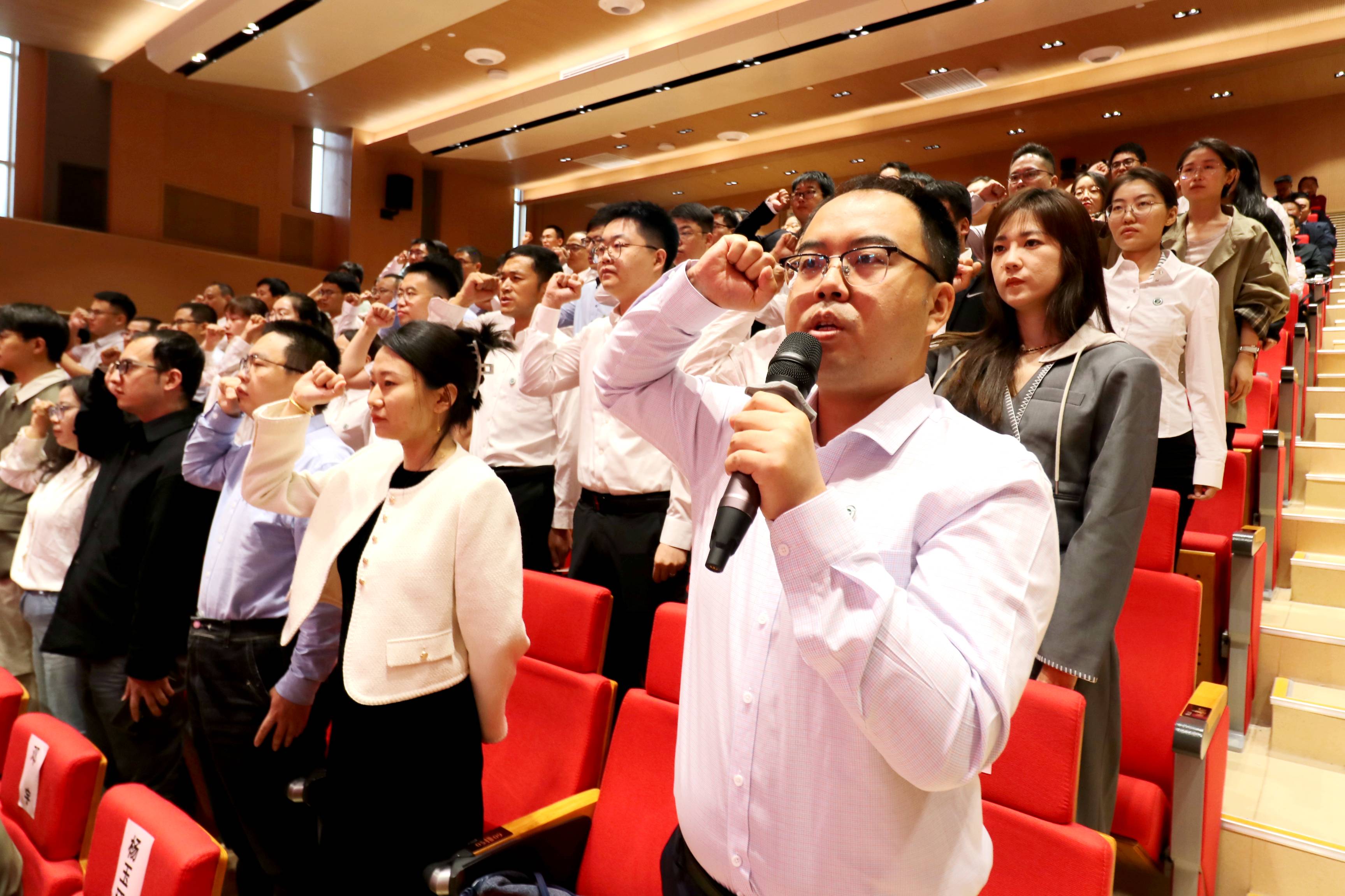 在化学化工学院李一然老师的领誓下,全体新入职教师起立,进行了庄重的入职宣誓仪式。