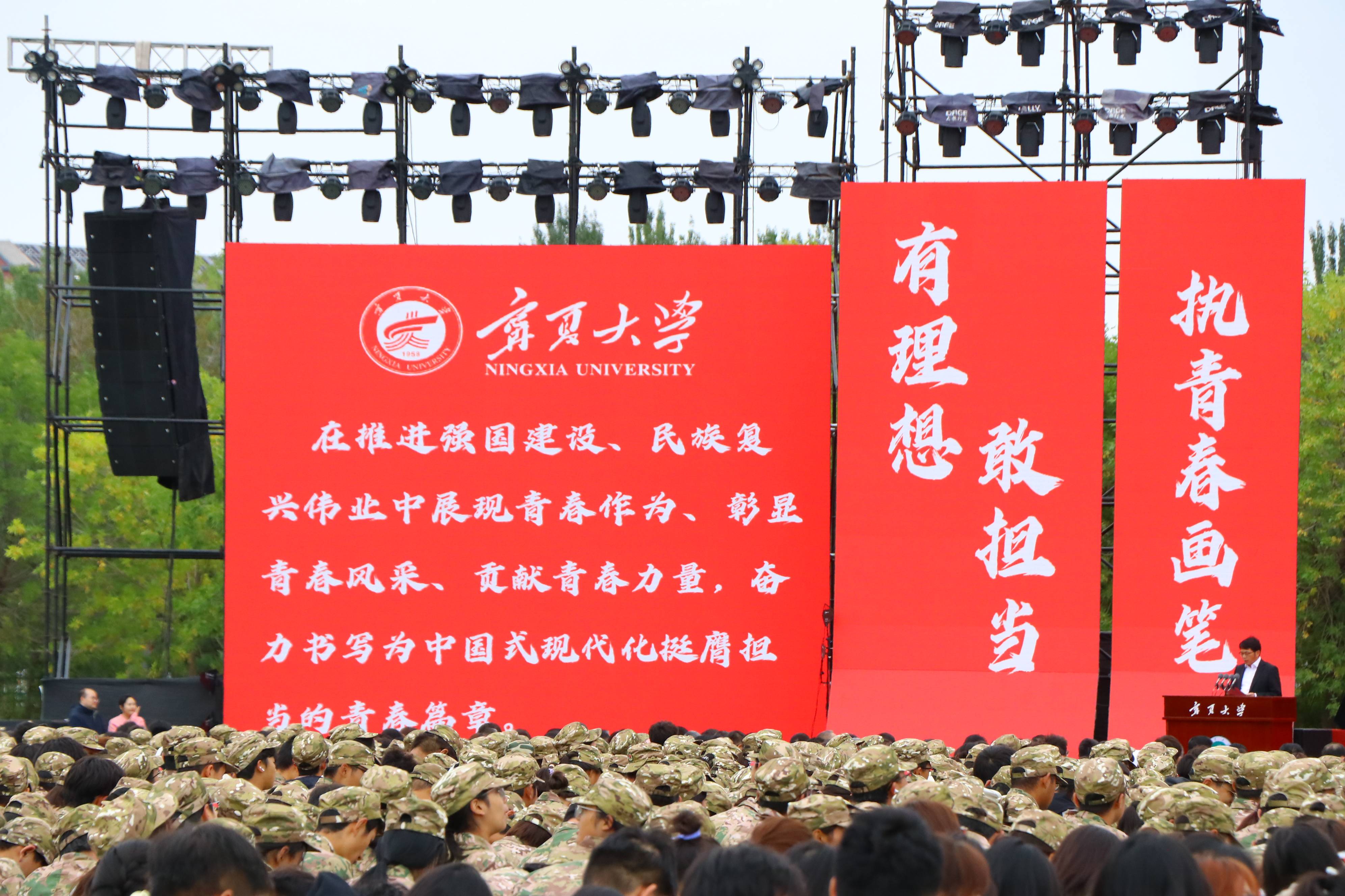 “......我们聚集在贺兰山下,为的是重振西部的辉煌。志存高远,脚踏实地,肩负起明天的希望......”开学典礼在与会师生意气风发的校歌声中圆满落幕。