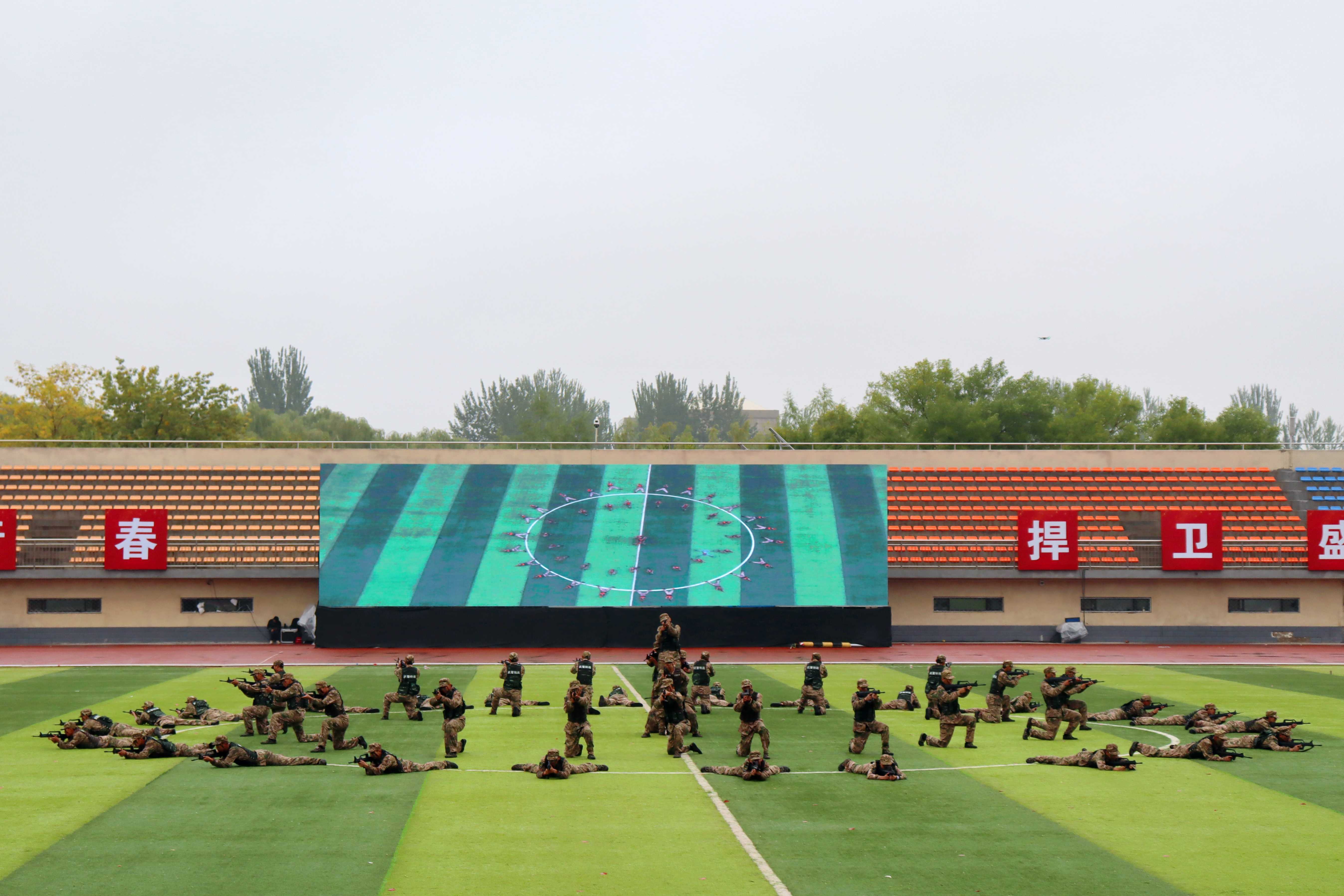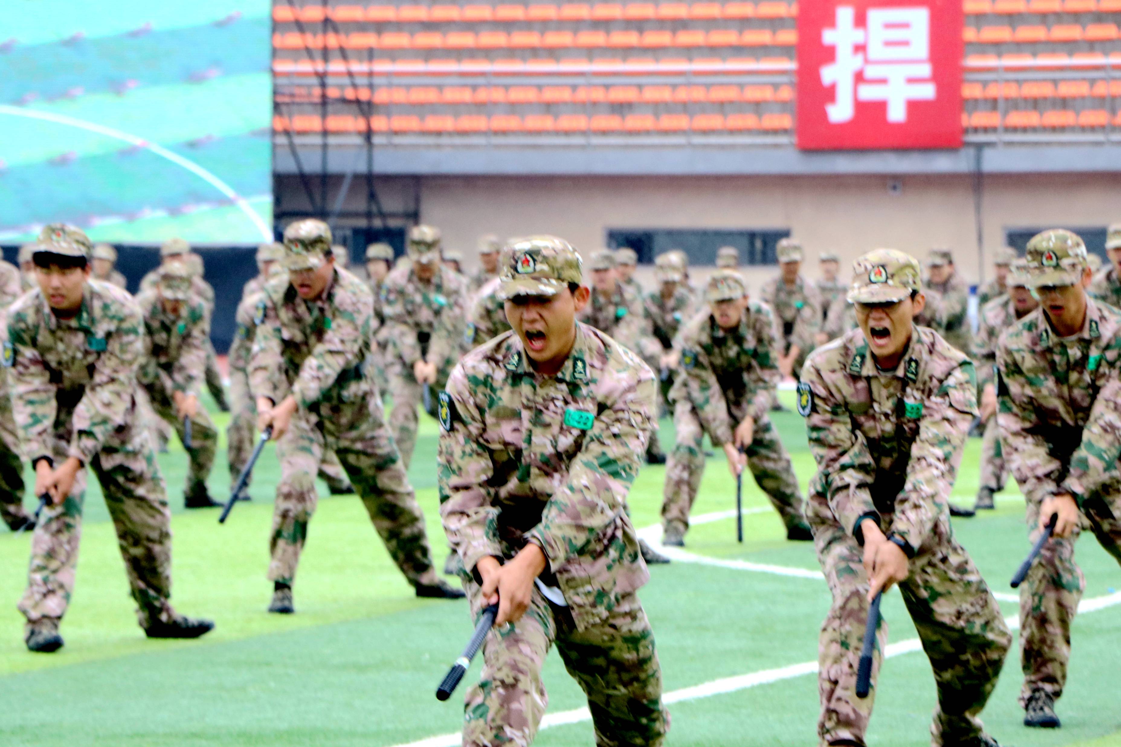 在科目汇报上,收展迅速、气势如虹的图形变换展演,活力四射、朝气勃勃的啦啦操表演,训练有素、实战性强的擒敌拳,身手矫健、攻防兼备的警棍术,身形敏捷、势如破竹的刺杀操,英勇精进、战术娴熟的分队战术,歌声嘹亮、精神抖擞的军歌表演,表达了宁大学子“青春如火、国防有我”的信念和决心,赢得了全场师生阵阵掌声。